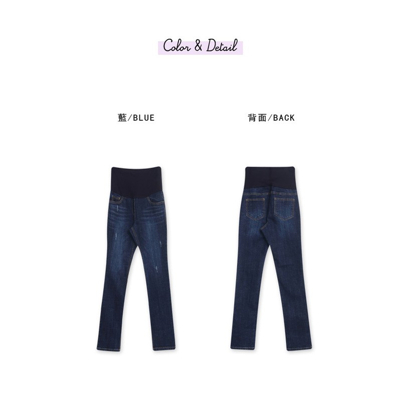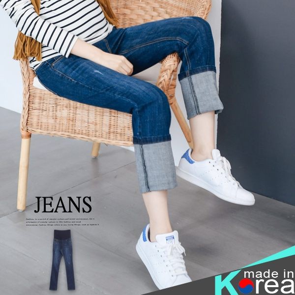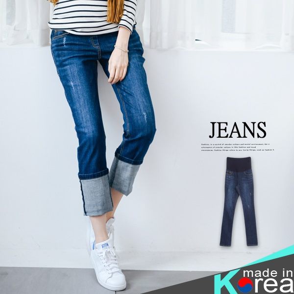 腰可調 深色系反摺直筒牛仔褲【HB3540】哈韓孕媽咪孕婦裝