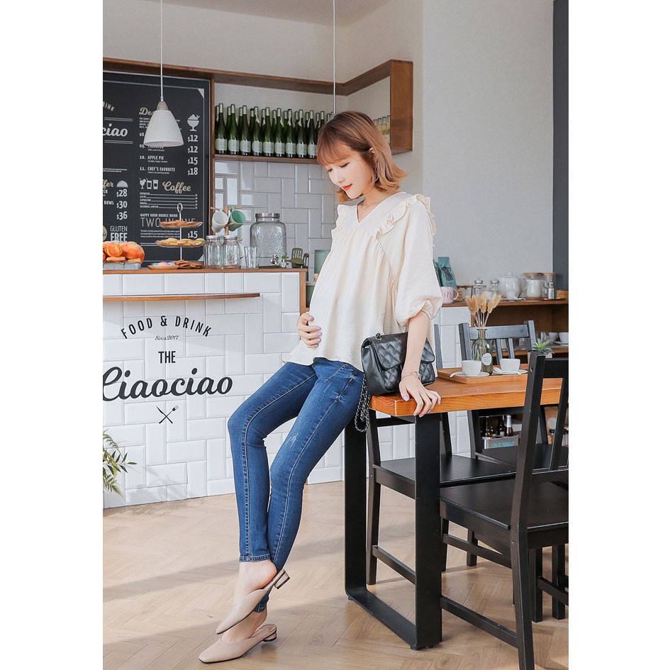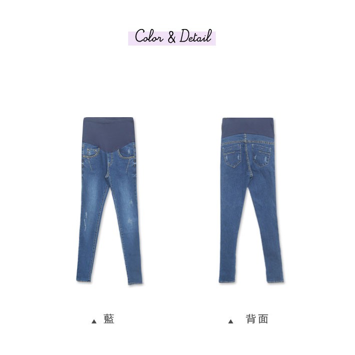 腰可調 激瘦刷色彈力牛仔窄管褲 哈韓孕媽咪孕婦裝 【HB3671】
