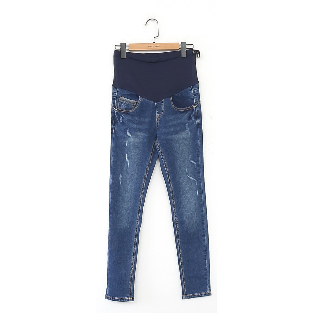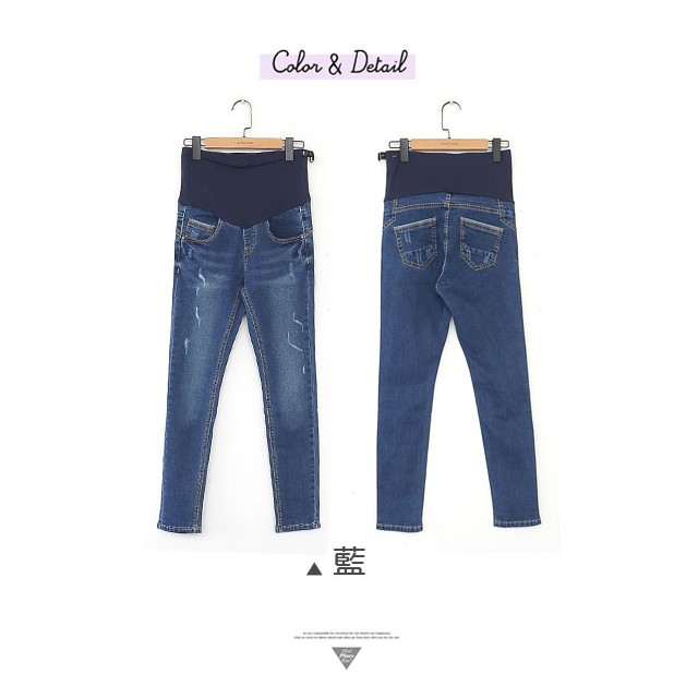 腰可調 顯瘦深藍窄管牛仔褲 哈韓孕媽咪孕婦裝【HB3932】