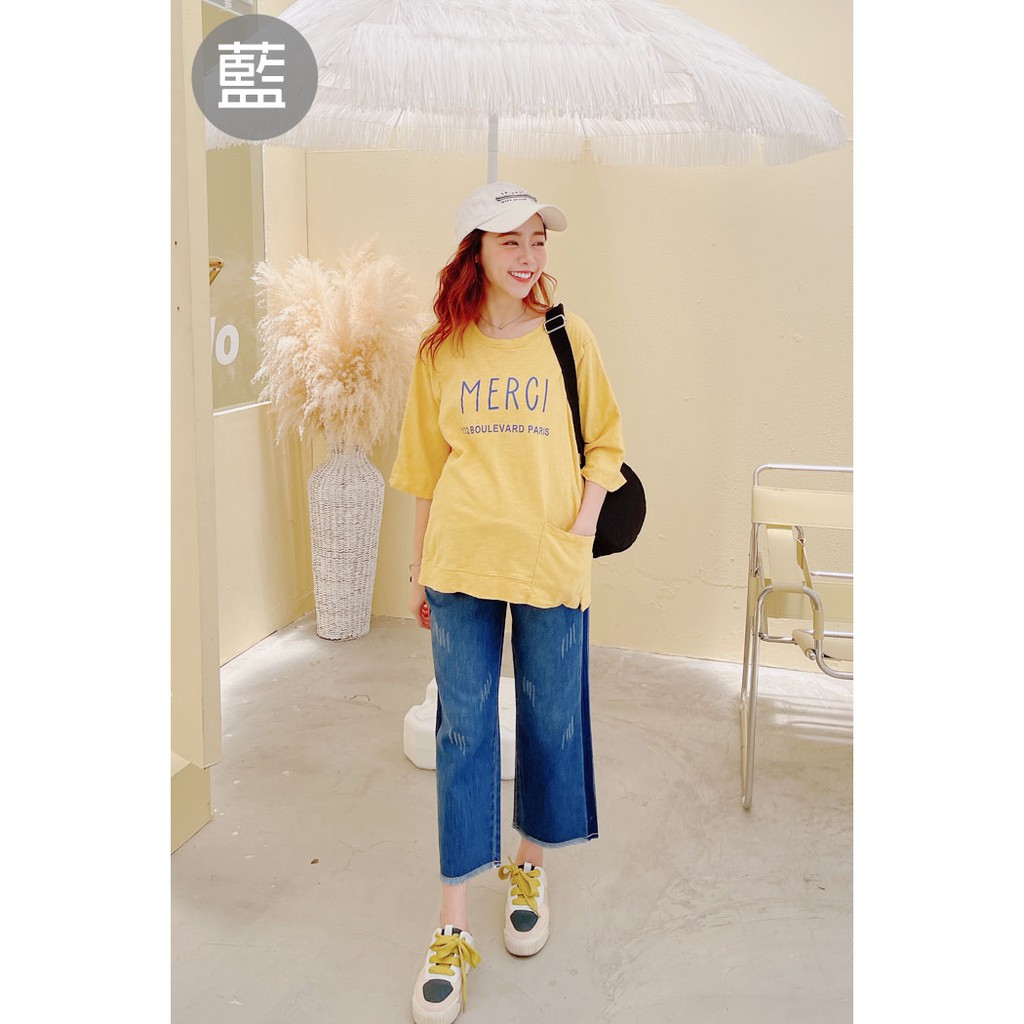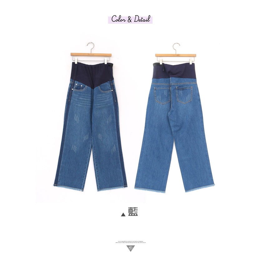 腰可調 側條刷色抽鬚牛仔寬褲【HB3988】