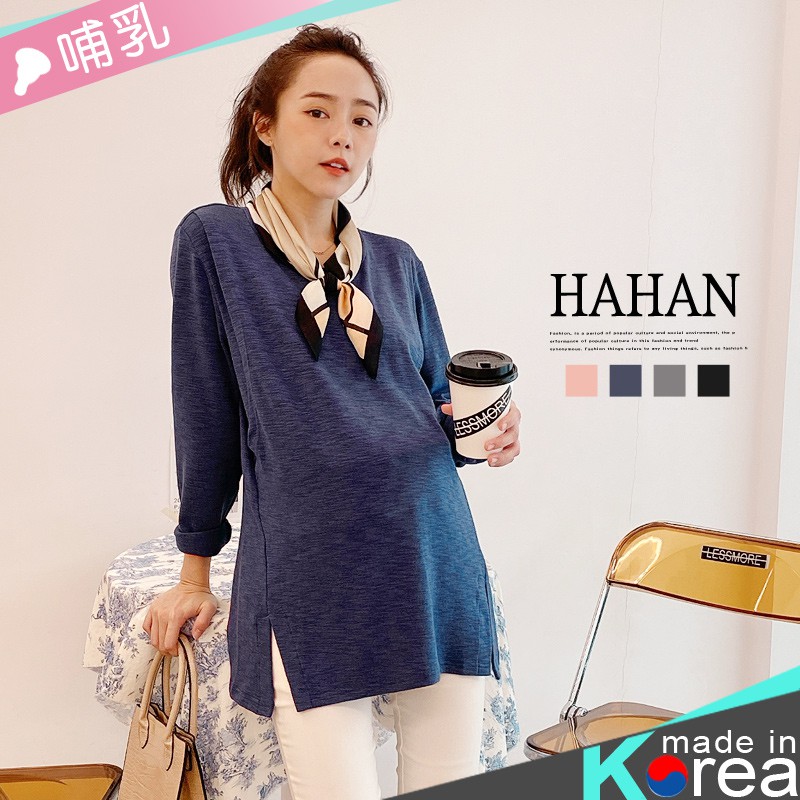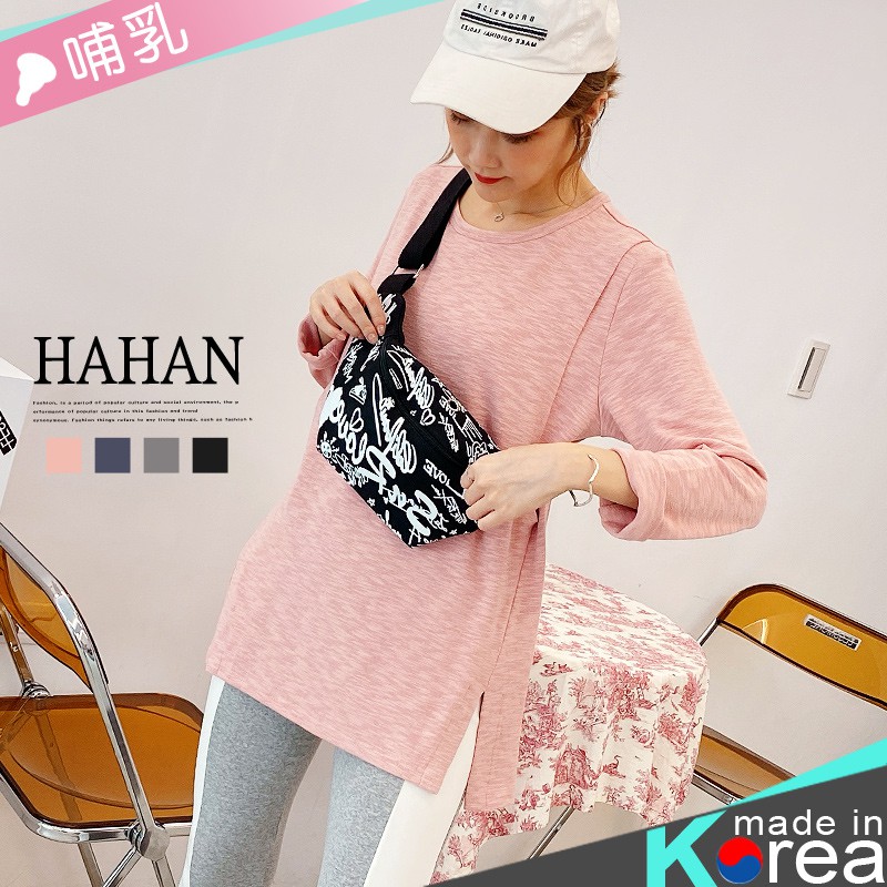 圓領下開衩 混織棉哺乳T 【HA6319】