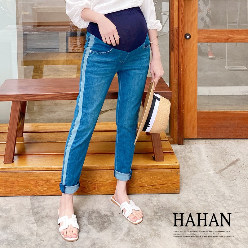 腰可調 顯瘦拼接窄管牛仔褲【HB3953】