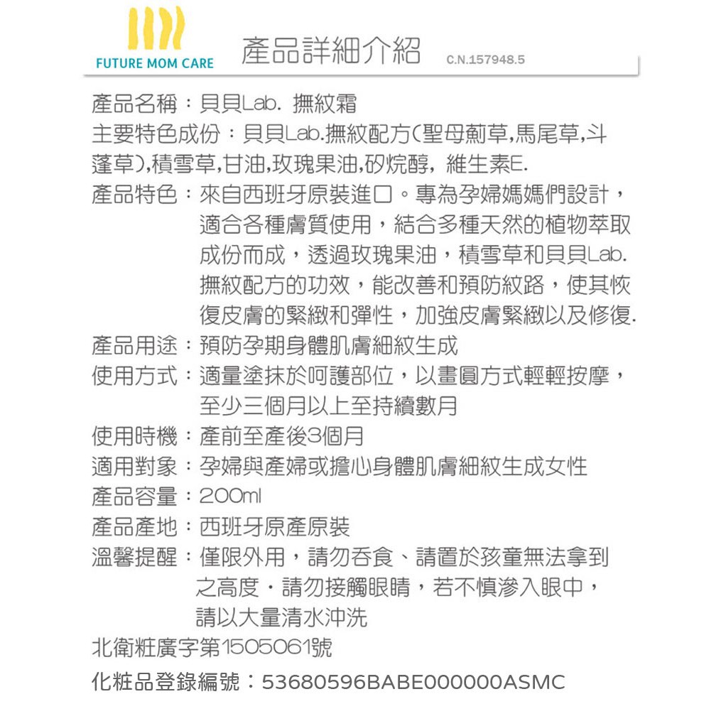 西班牙BABE貝貝Lab撫紋妊娠霜200ml【HY1125】