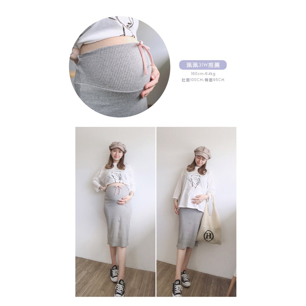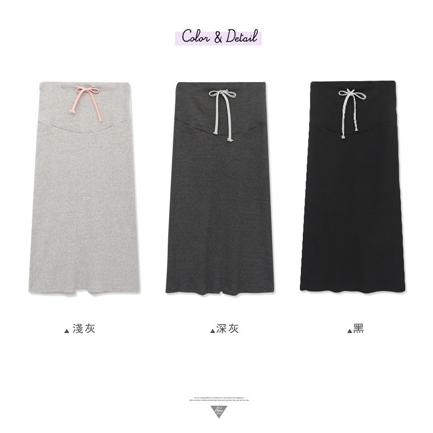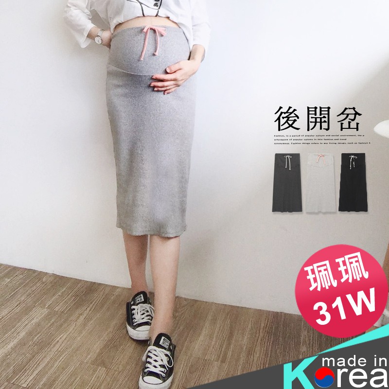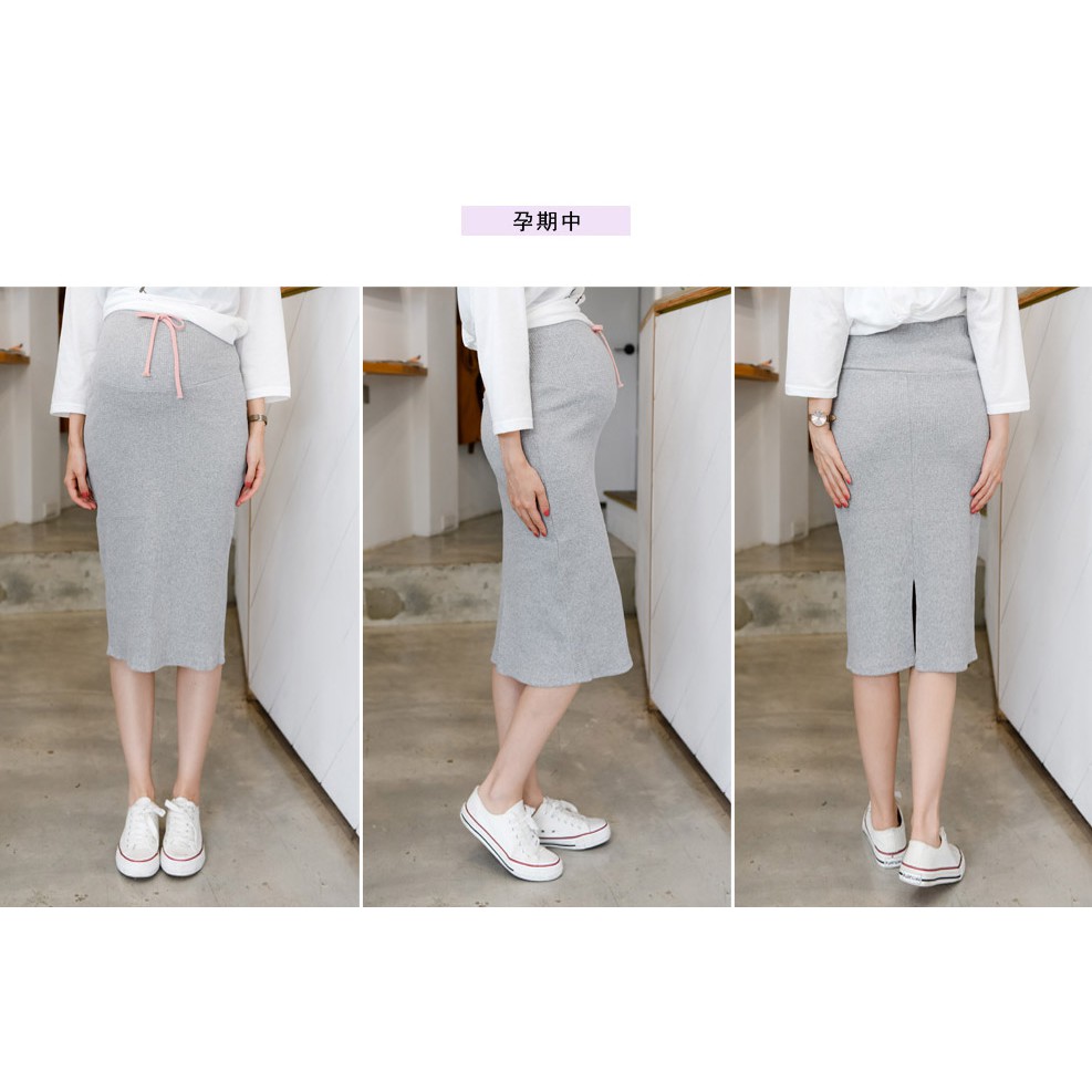 哈韓孕媽咪孕婦裝 抽繩瑜珈腰 彈力坑條後開岔窄裙 【HB3765】