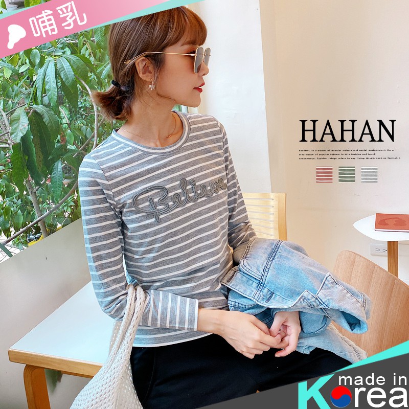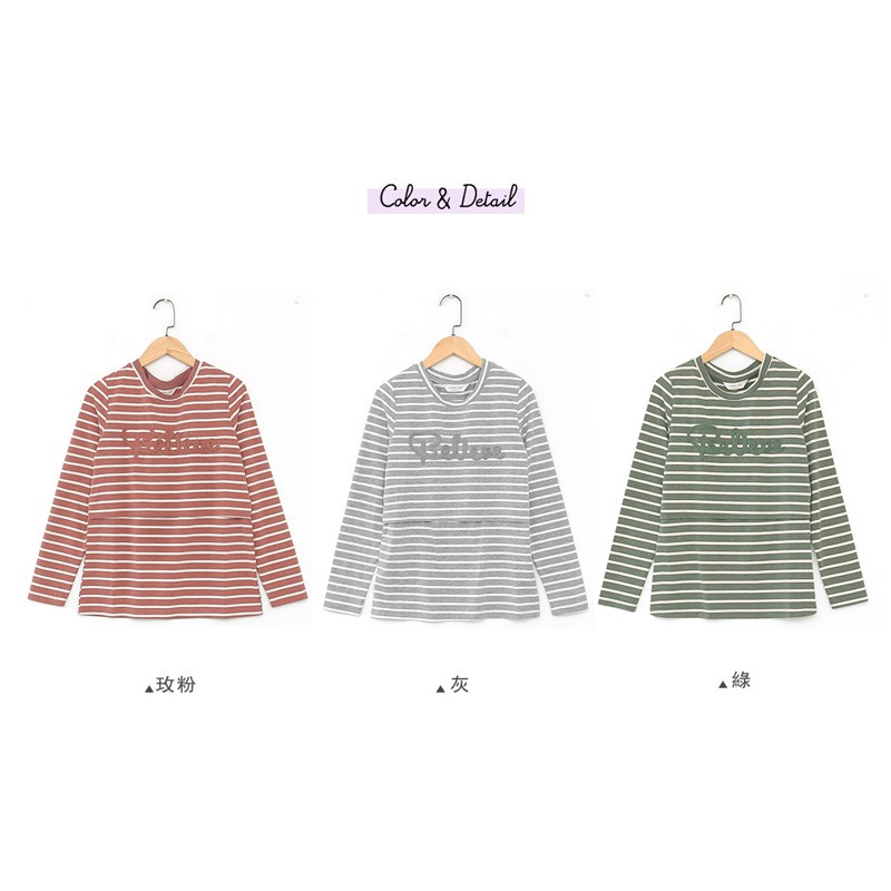 哈韓孕媽咪孕婦裝 立體刺繡英文字 條紋哺乳衣【HA6340】