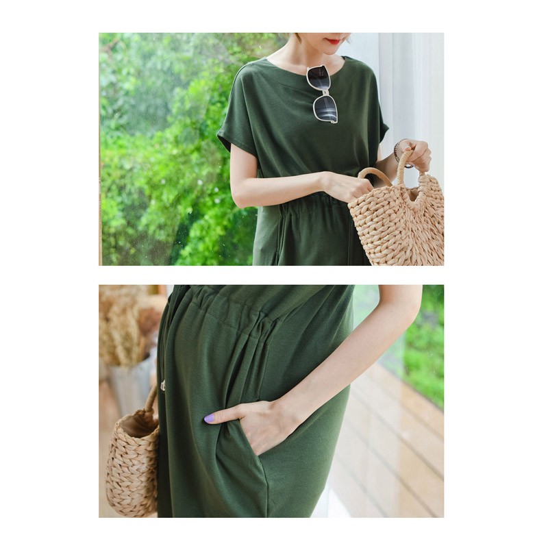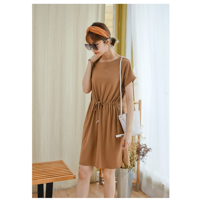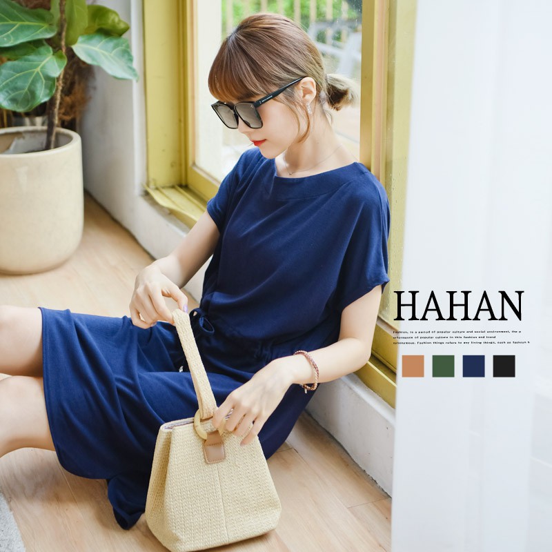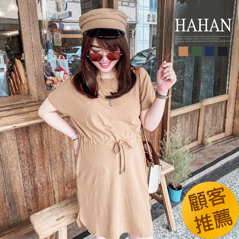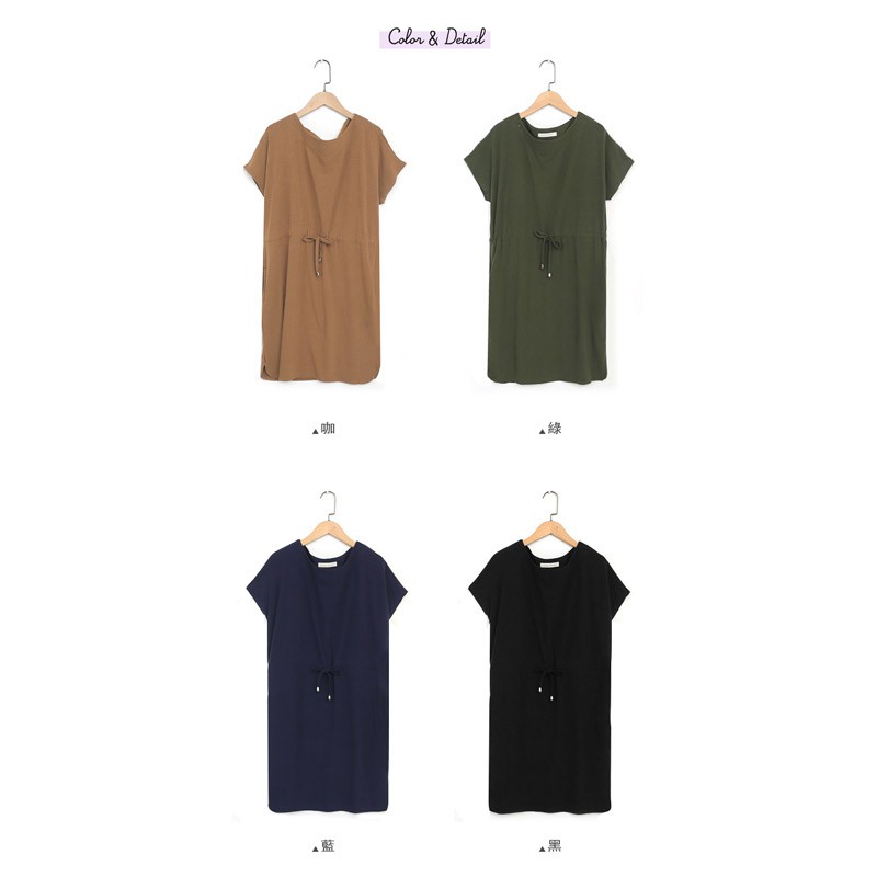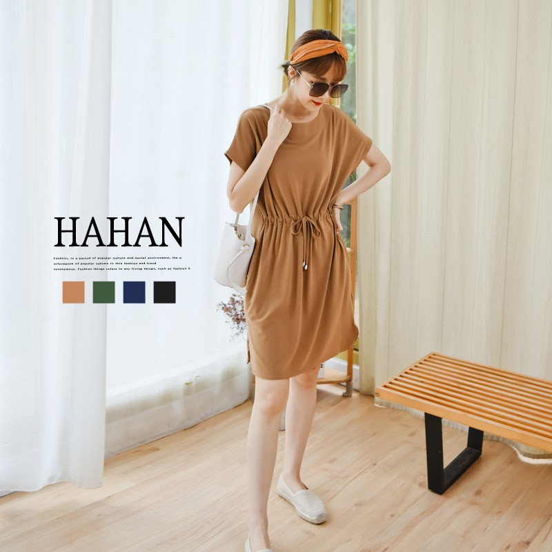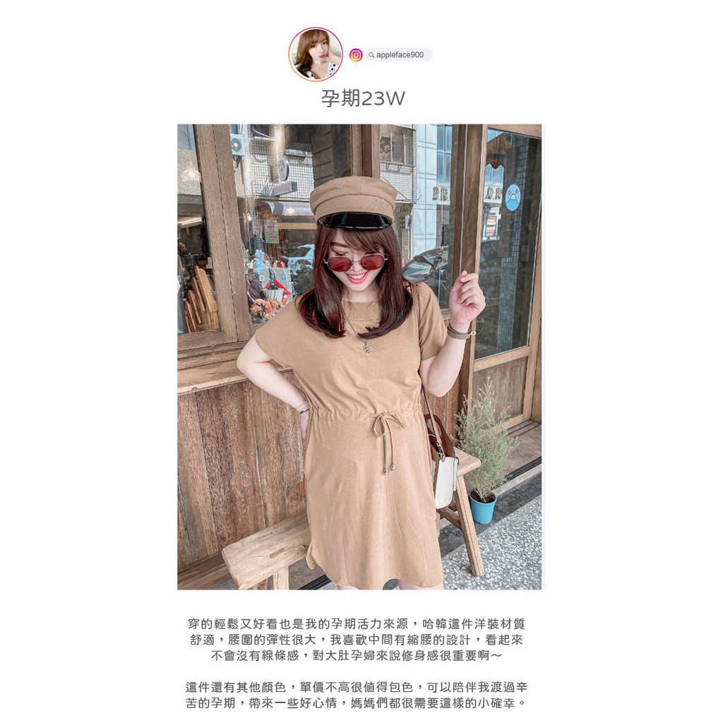 哈韓孕媽咪孕婦裝 素面高腰抽繩 雙口袋洋裝【HC5145】