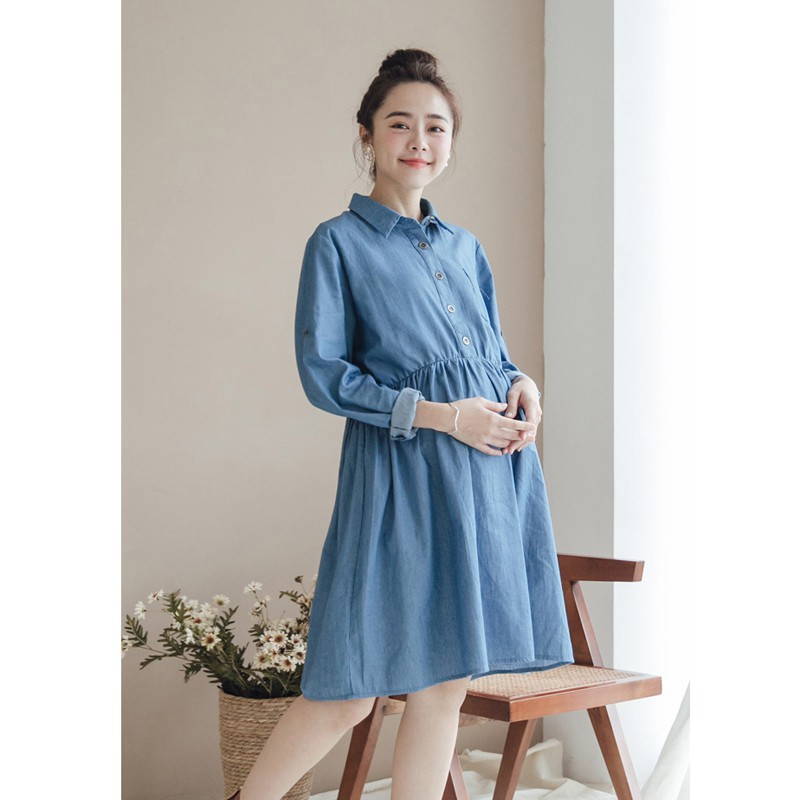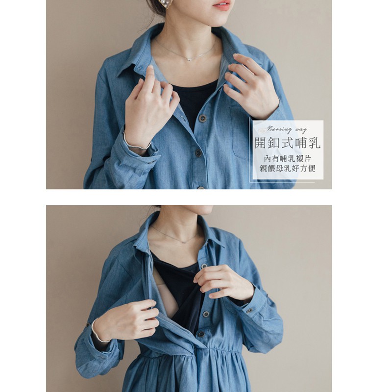 仿牛仔半開釦 襯衫哺乳洋 哈韓孕媽咪孕婦裝【HC4971】