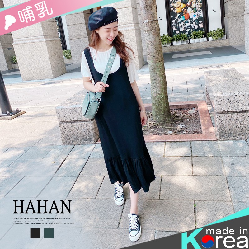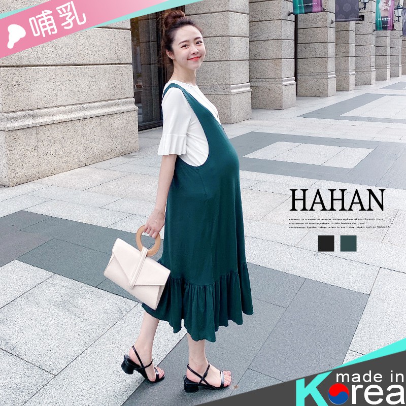假兩件 荷葉襬絲質棉哺乳洋 哈韓孕媽咪孕婦裝【HC5167】