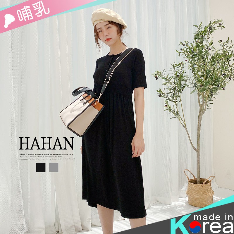 防激凸 半開釦縮腰 絲質棉哺乳洋 哈韓孕媽咪孕婦裝 【HC5188】