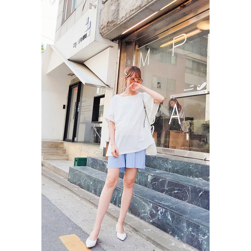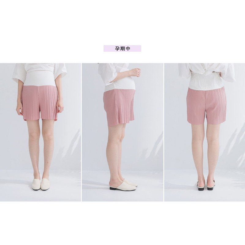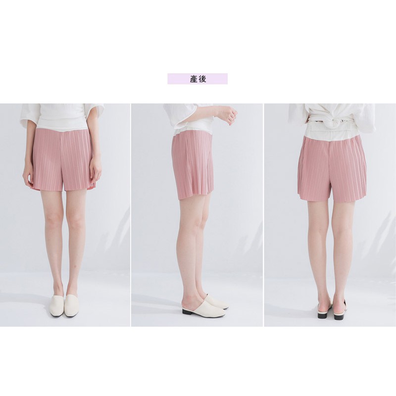 哈韓孕媽咪孕婦裝 瑜珈腰 百折壓紋雪紡棉紗短褲【HB3673】