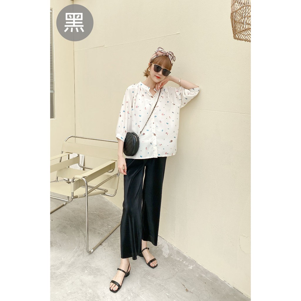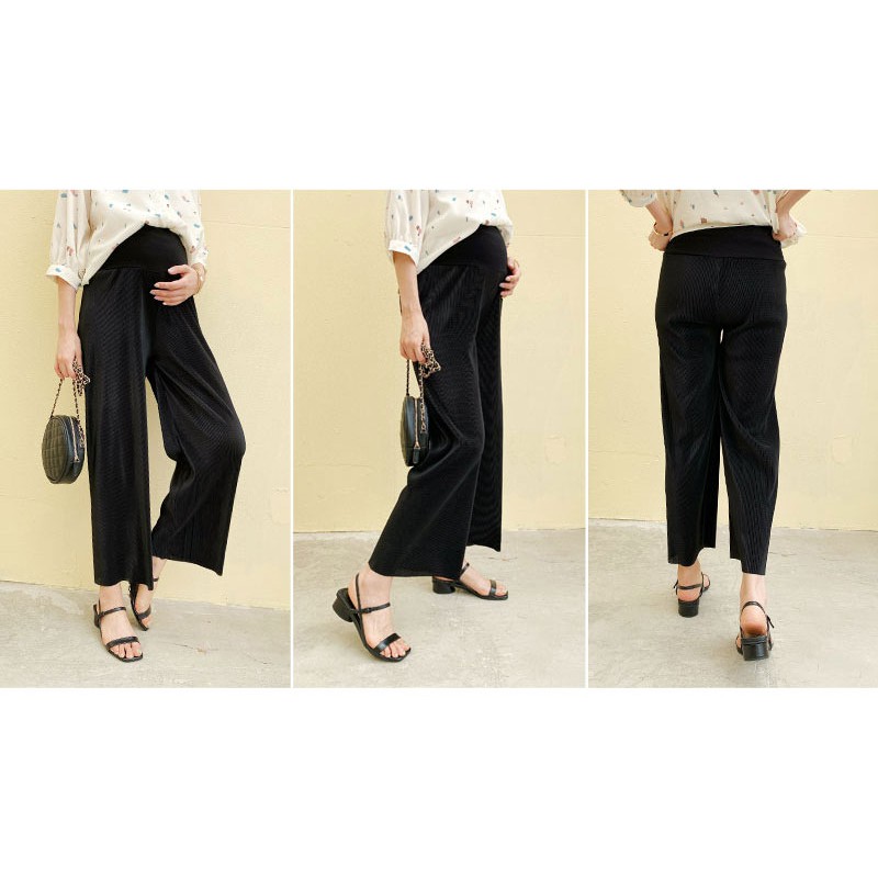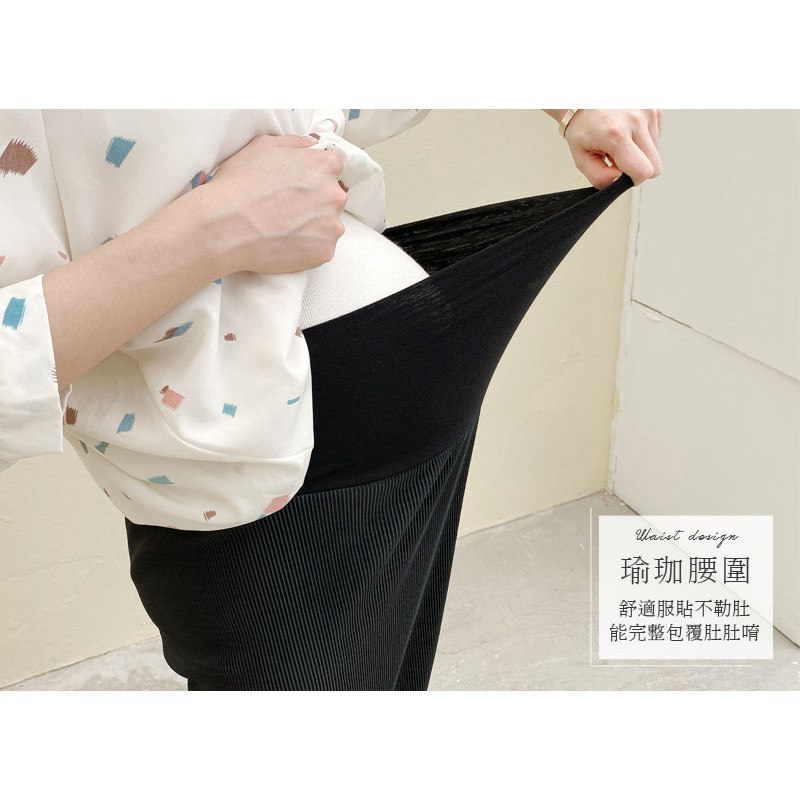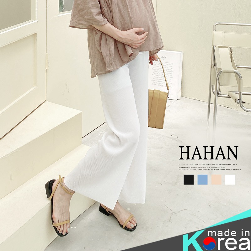 哈韓孕媽咪孕婦裝 瑜珈腰 光澤感坑條寬褲【HB3963】