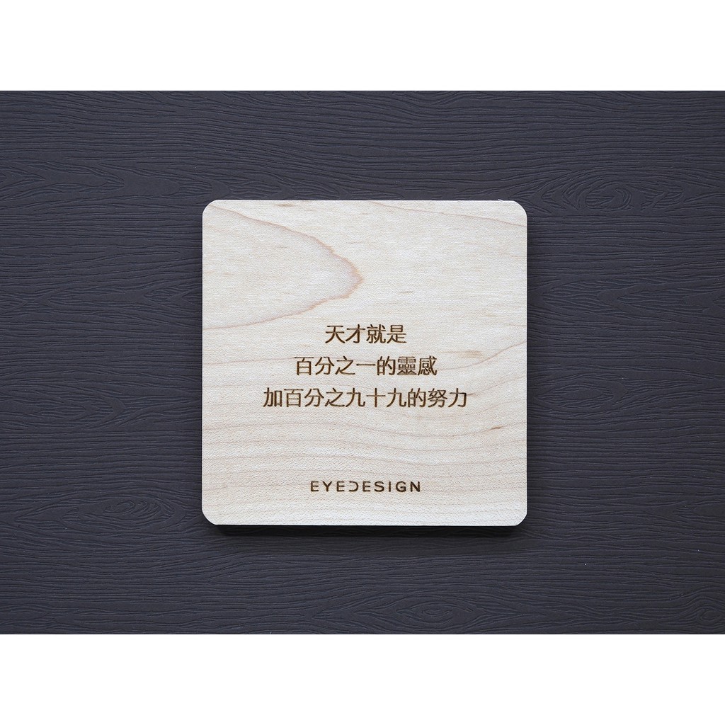 一句話原木杯墊 天才就是百分之一的靈感加百分之九十九的努力