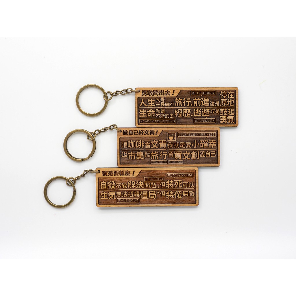 原木小對聯鑰匙圈-就是要賴皮/勇敢跨出去/做自己好文青