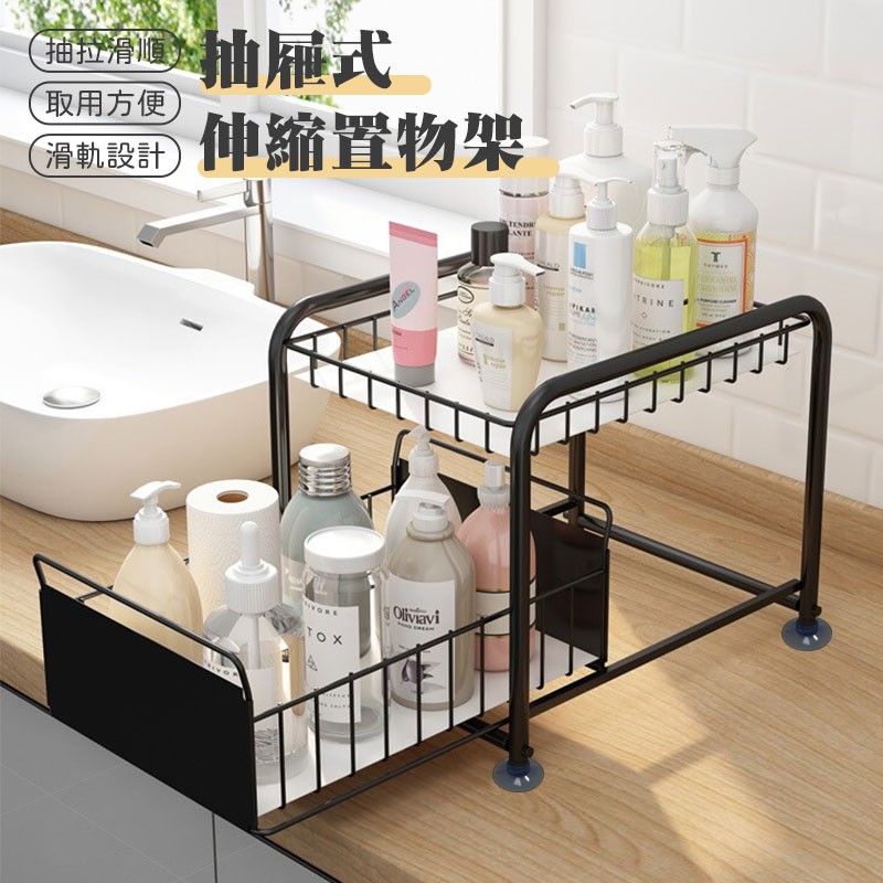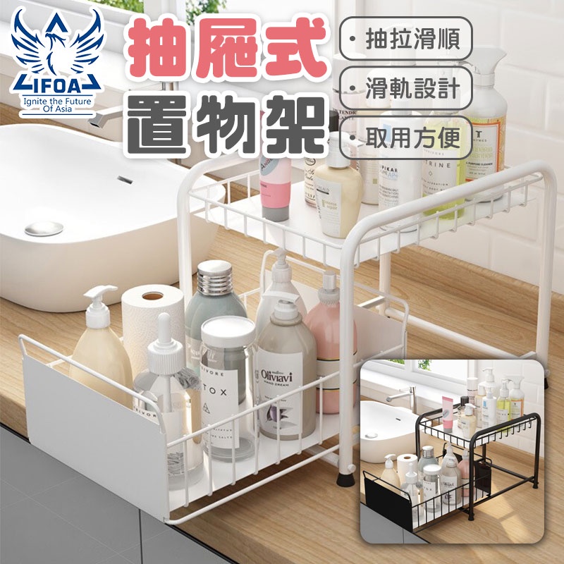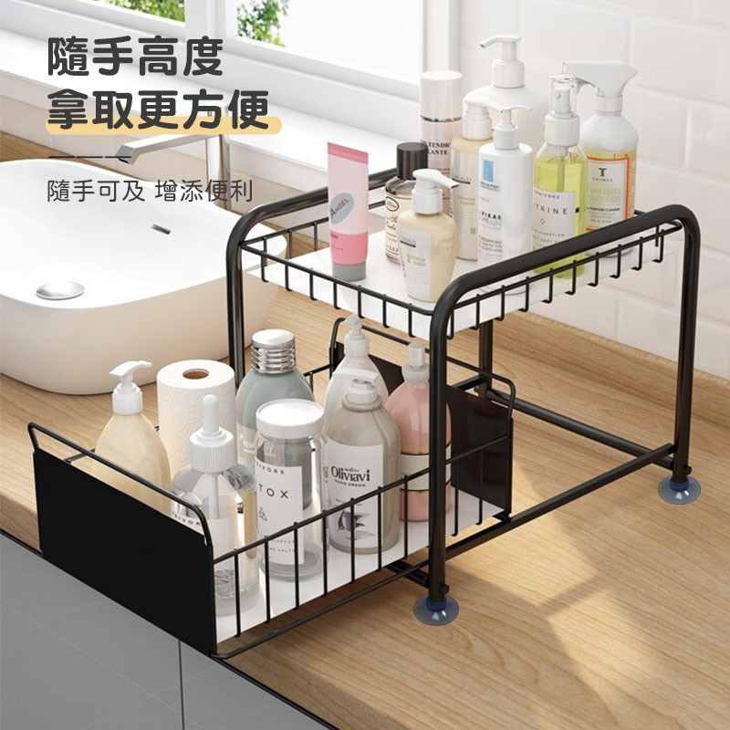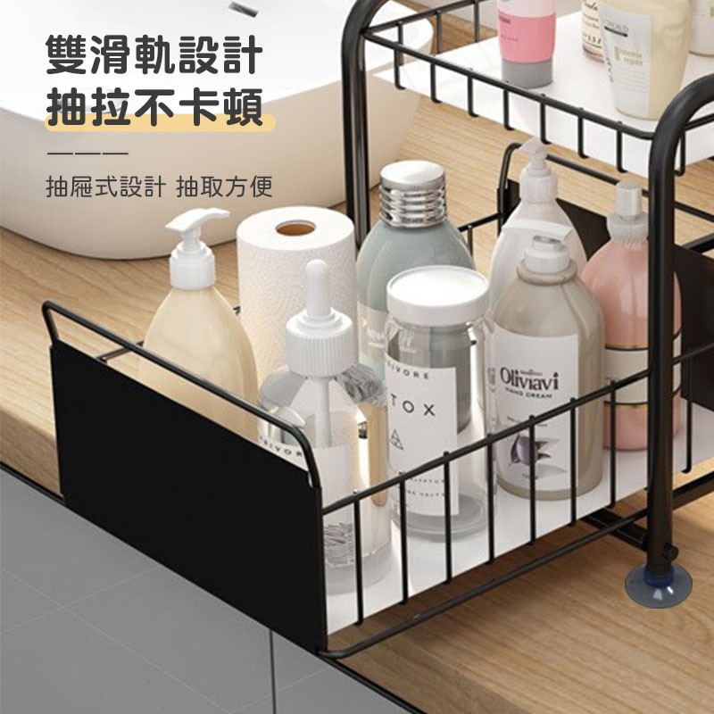 日式抽屜置物架【00854】水槽下置物架 抽拉式儲物架 落地式置物架 廚房置物架 抽屜式儲物架 雙層收納 櫃子收納