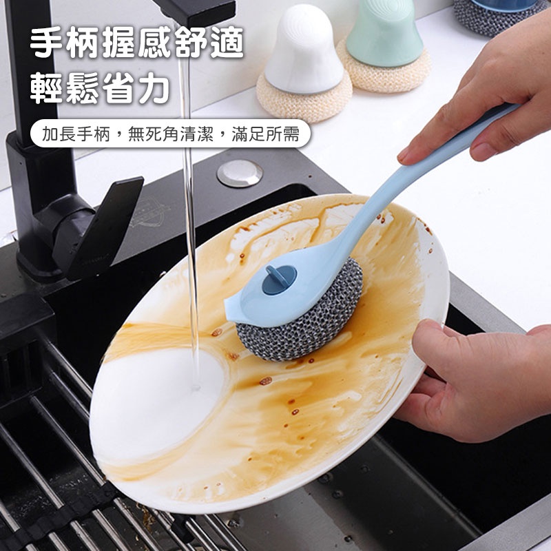 奈米清潔鋼刷 奈米鍋刷 刷鍋神器 納米鋼絲球 廚房清潔球 長柄刷【60075】