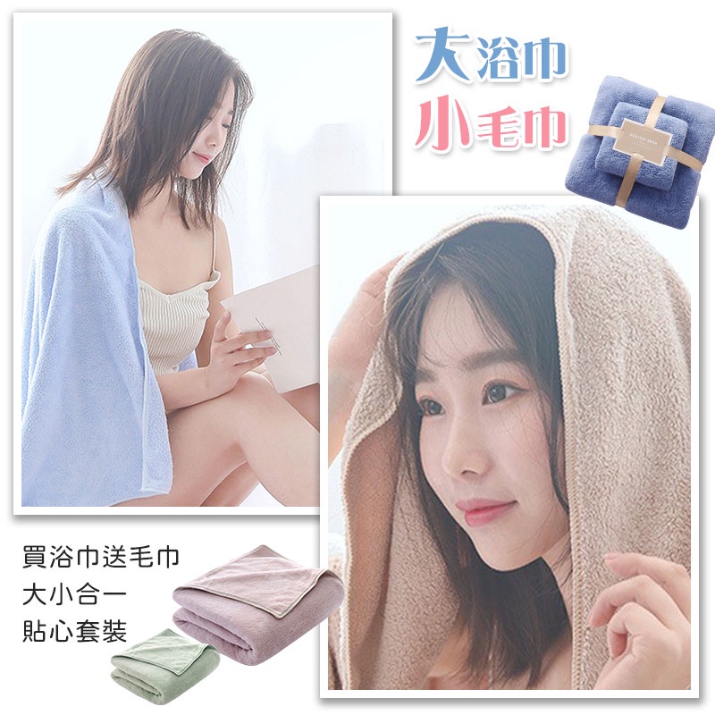 珊瑚絨吸水浴巾【60359】買大送小 瞬吸毛巾 浴巾 超細纖維 吸水不掉毛 浴巾+毛巾2件組 加厚毛巾 洗澡