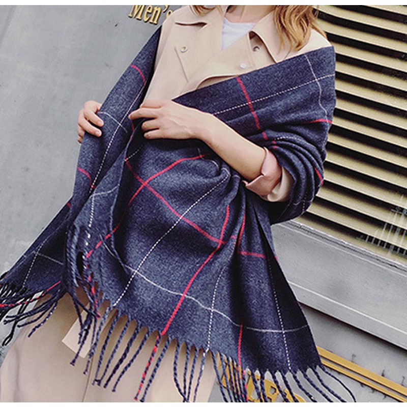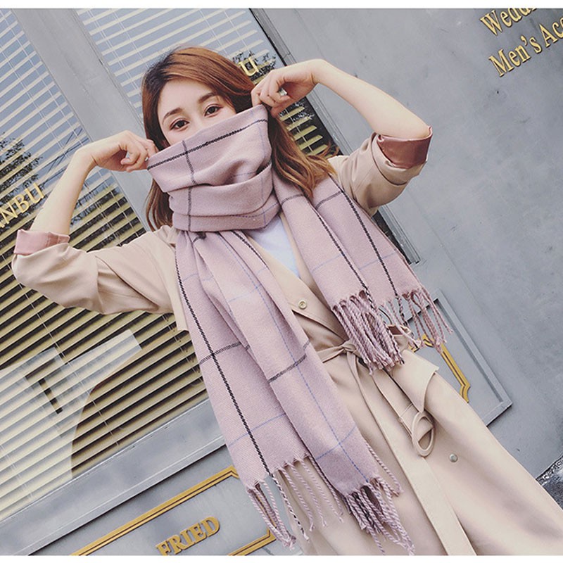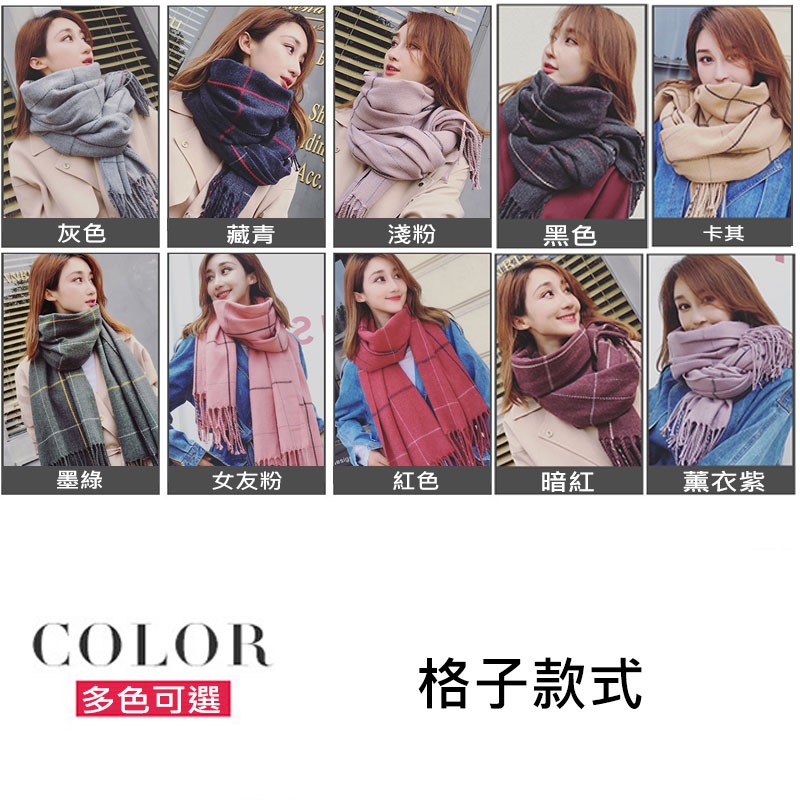 【台灣現貨】超柔軟格紋撞色針織圍巾 IFOA【00191】