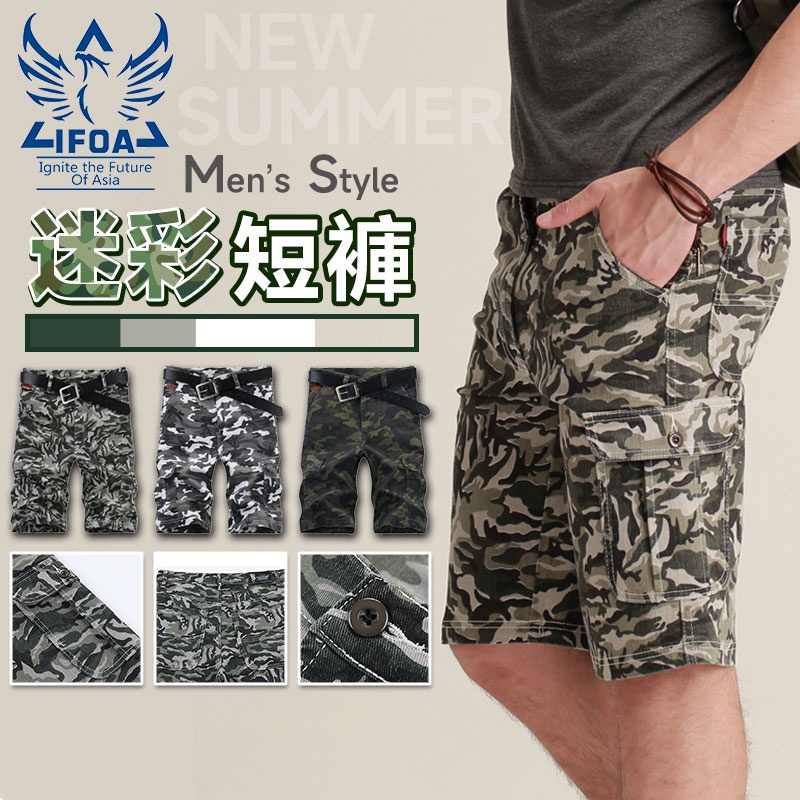 超彈性迷彩五分短褲 IFOA【8873】夏日首選 休閒短褲 迷彩工作短褲 3色 28腰-40腰 全尺碼