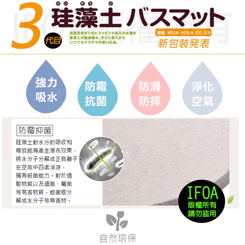 吸水珪藻土地墊 高密度三代款 雷射商標正版 IFOA【00073】