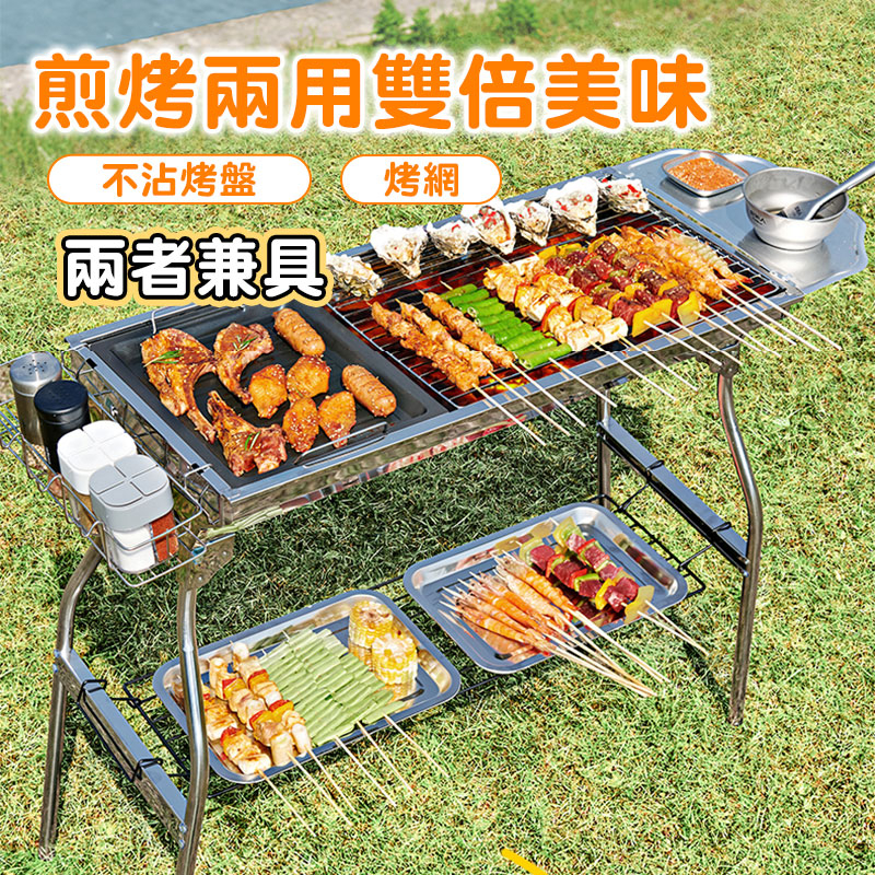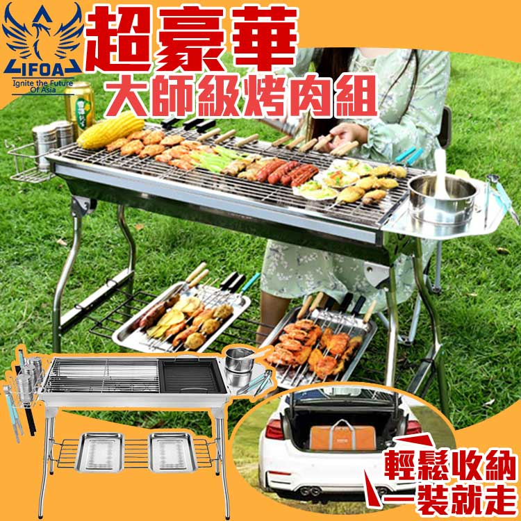 台灣公司現貨 快速出貨 戶外便攜多功能不銹鋼摺疊豪華烤肉架 IFOA 買1送20 烤肉架 免運優惠