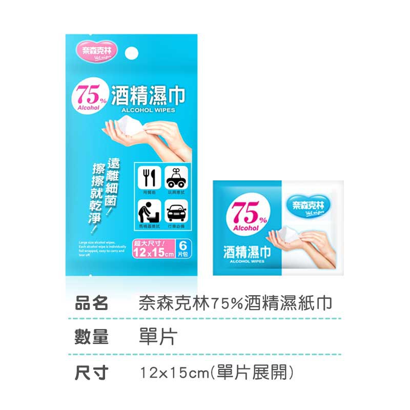 奈森克林酒精濕紙巾單片入【00644】酒精濕紙巾 殺菌 消毒紙巾 乾洗手 隨身消毒用品 隨身包 衛生清潔