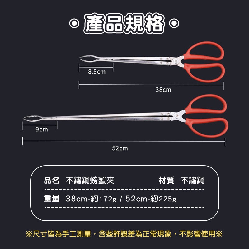 不鏽鋼螃蟹夾 【00733】38cm/52cm 不鏽鋼炭夾 木炭夾 燒烤夾 炭夾 烤肉夾 黃鱔夾 淨灘夾 趕海夾 火鉗