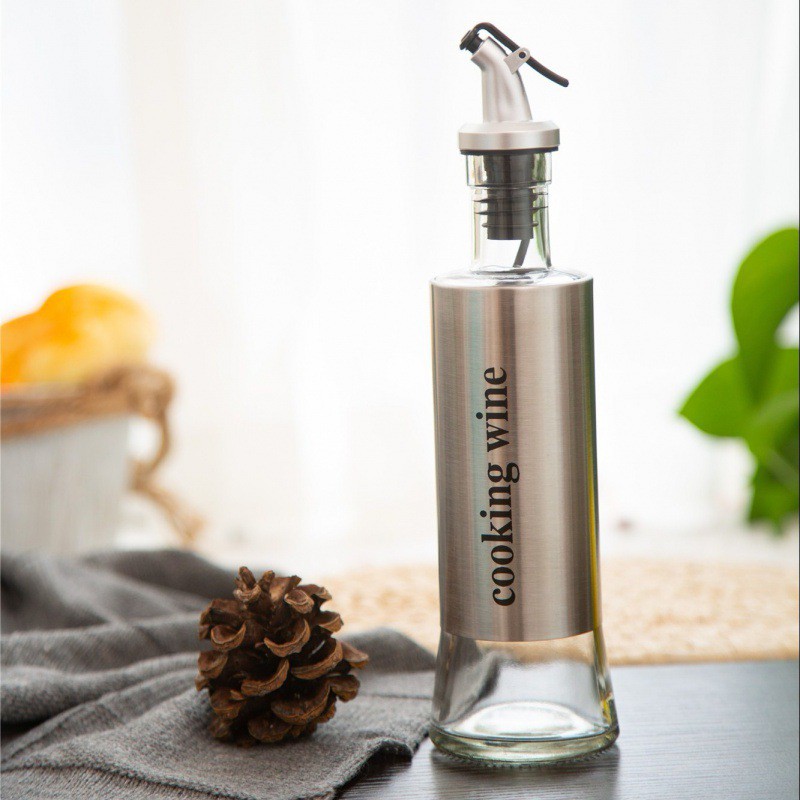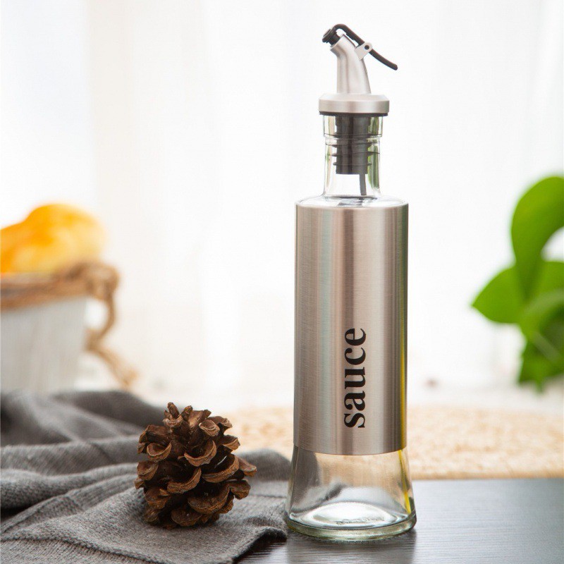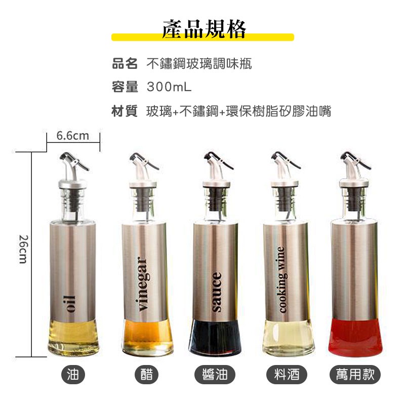 不鏽鋼玻璃油瓶300ML【00765】斜嘴玻璃調味瓶 廚房防漏調味瓶 玻璃油壺 調味瓶 油罐 油瓶