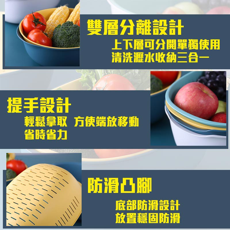 北歐雙層洗菜籃【00517】北歐風 廚房 瀝水籃 蔬果籃 收納籃 洗菜籃 雙層瀝水
