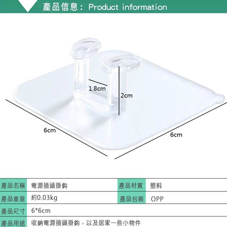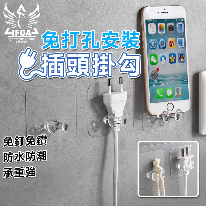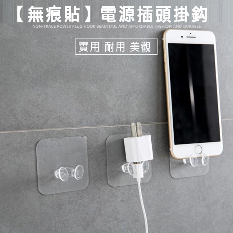 【台灣出貨】免釘免鑽無痕電源插頭掛勾【00259】