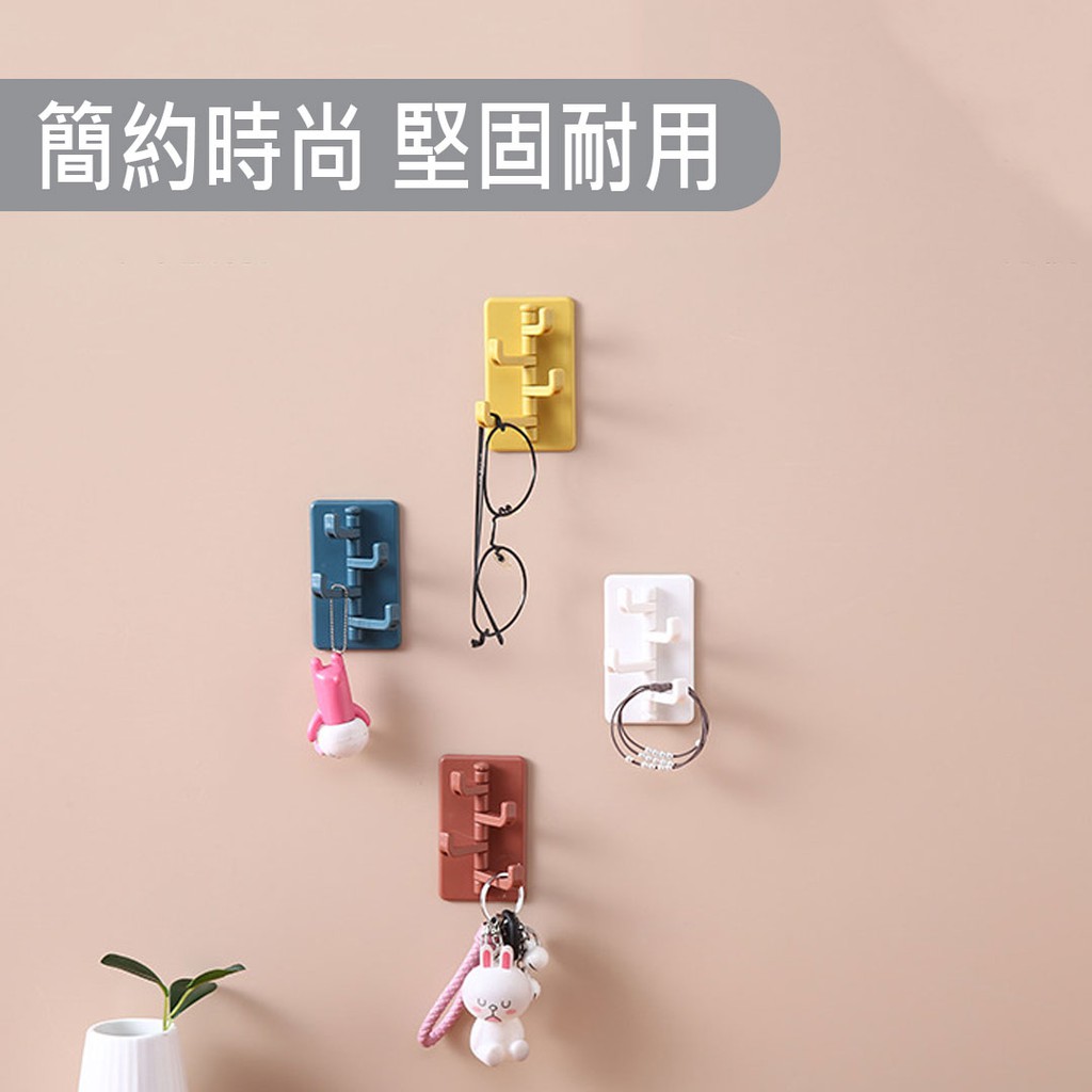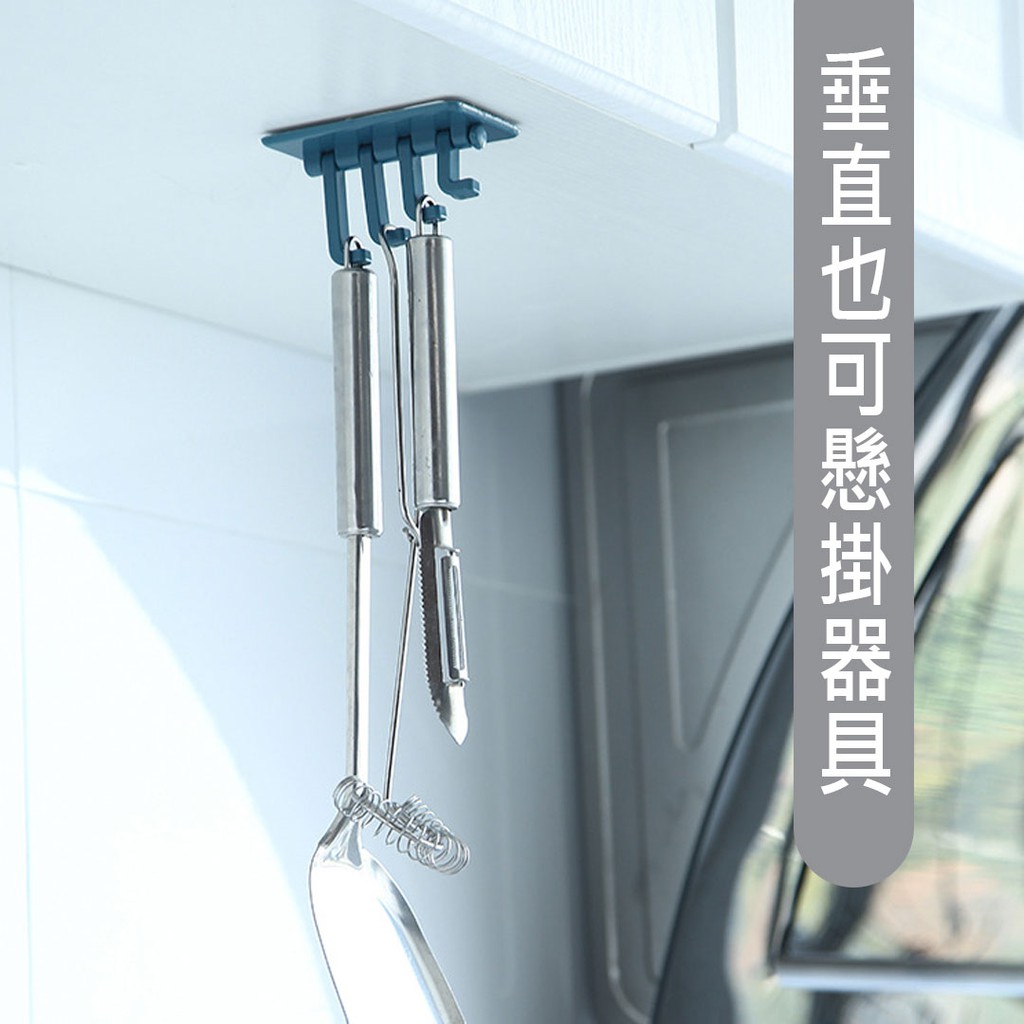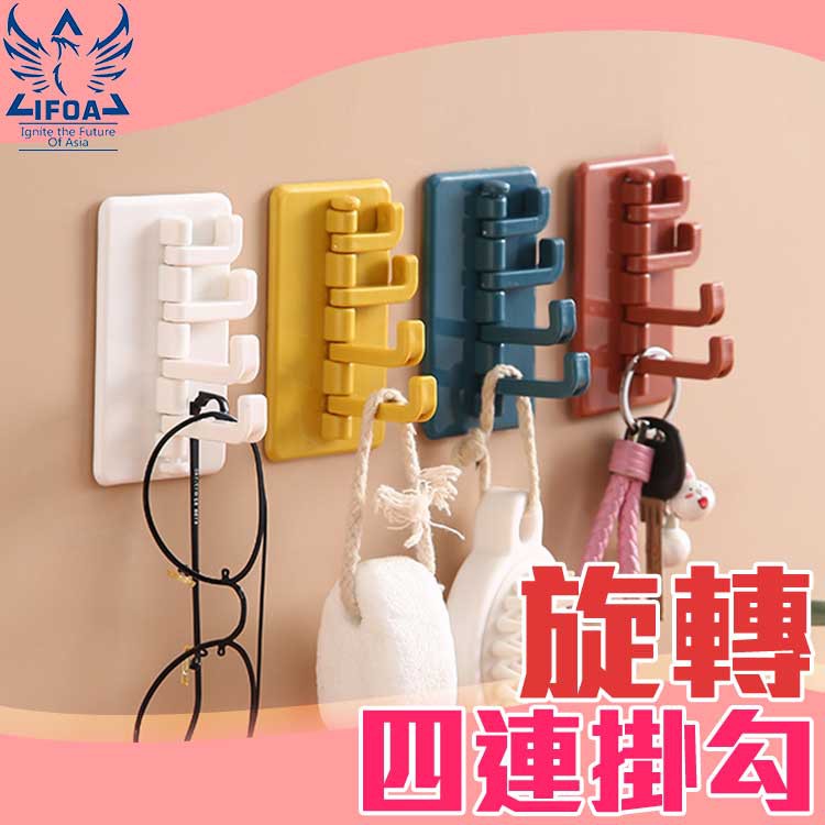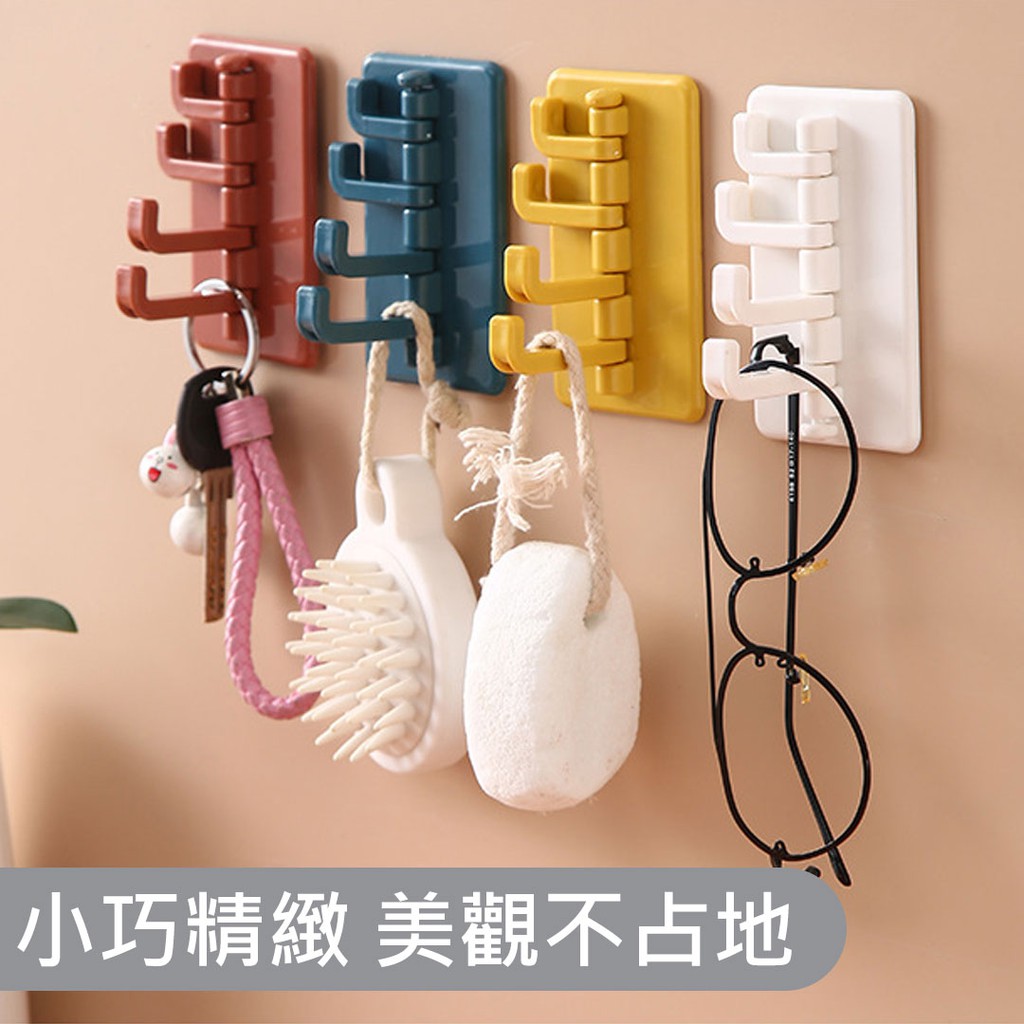 四排收納掛勾【00444】 一勾四用 無痕 迴旋 掛鈎 免釘掛鈎 掛架 黏勾 旋轉 塑料掛勾 無痕掛 無痕分支掛勾