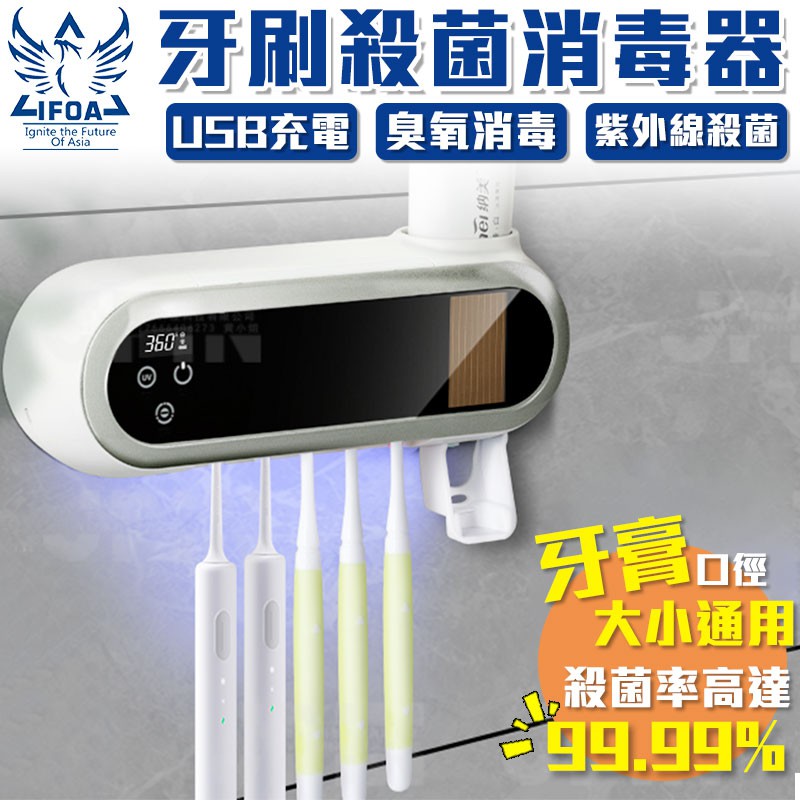 智能牙刷殺菌消毒器【00606】太陽能蓄電 免插電 自動擠牙膏 殺菌牙刷架 紫外線殺菌 臭氧消毒 觸動數位顯示 觸控