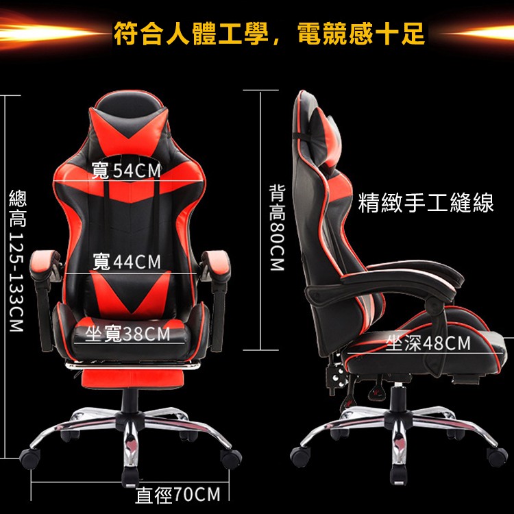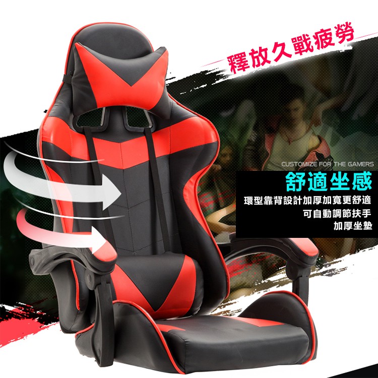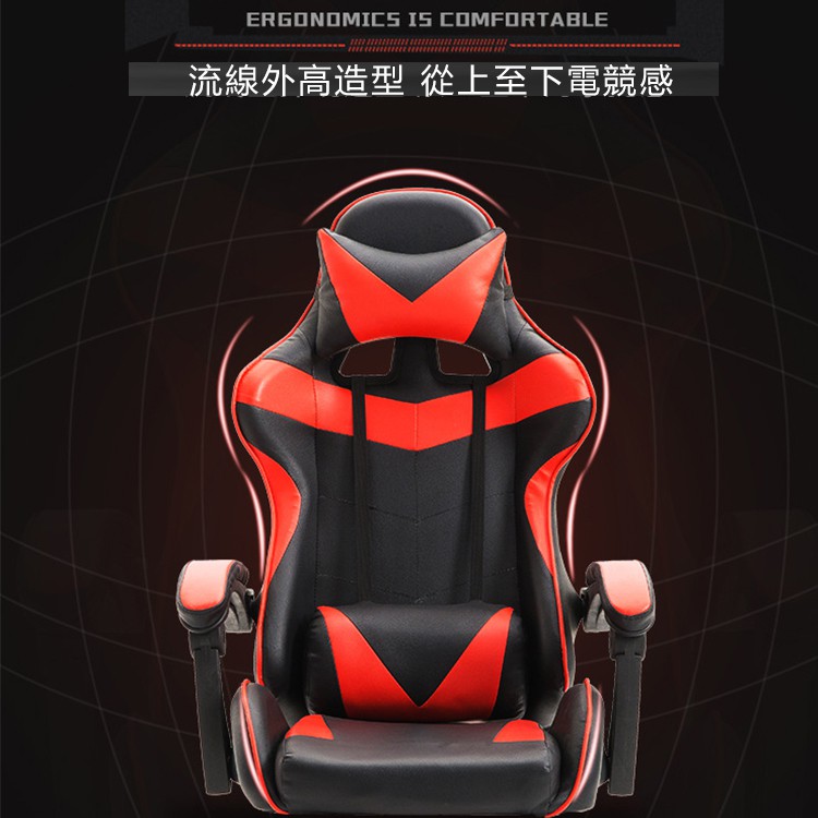 多功能可躺式電競椅【00281】奢華皮革PU 尼龍腳 電競椅 電腦椅 高質感 人體工學 辦公椅 賽車配色 可躺式