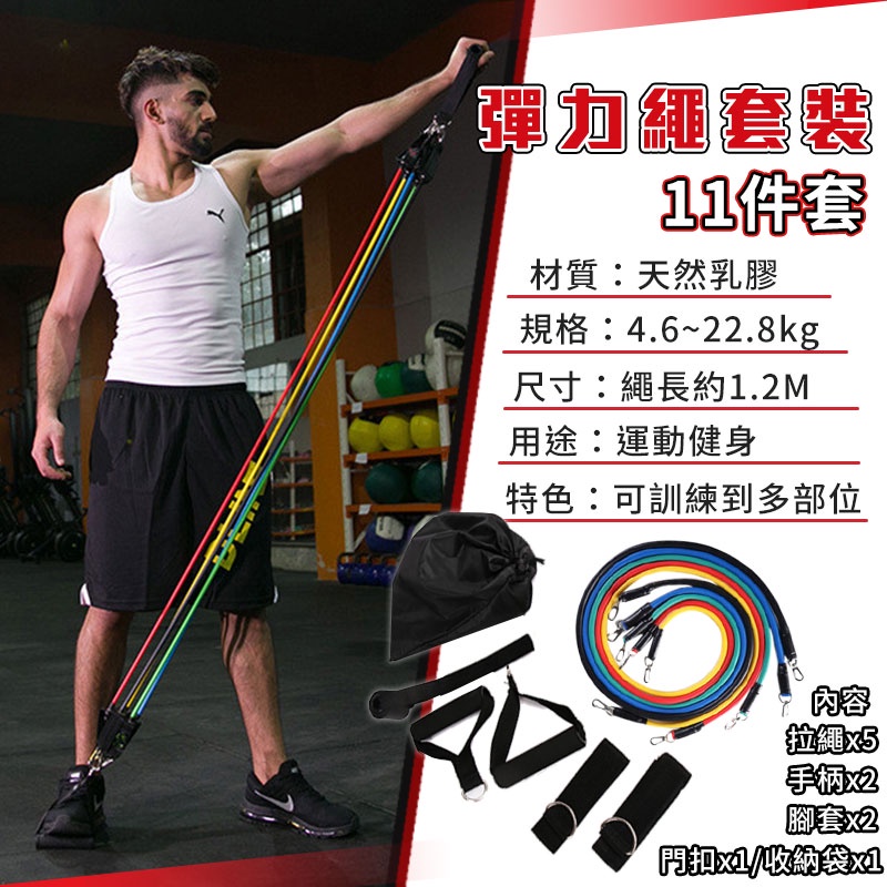 彈力拉力繩【00838】TRX彈力繩 健身阻力繩 訓練帶 健身 訓練 11件組 運動 重訓 訓練繩 減重 運動器材