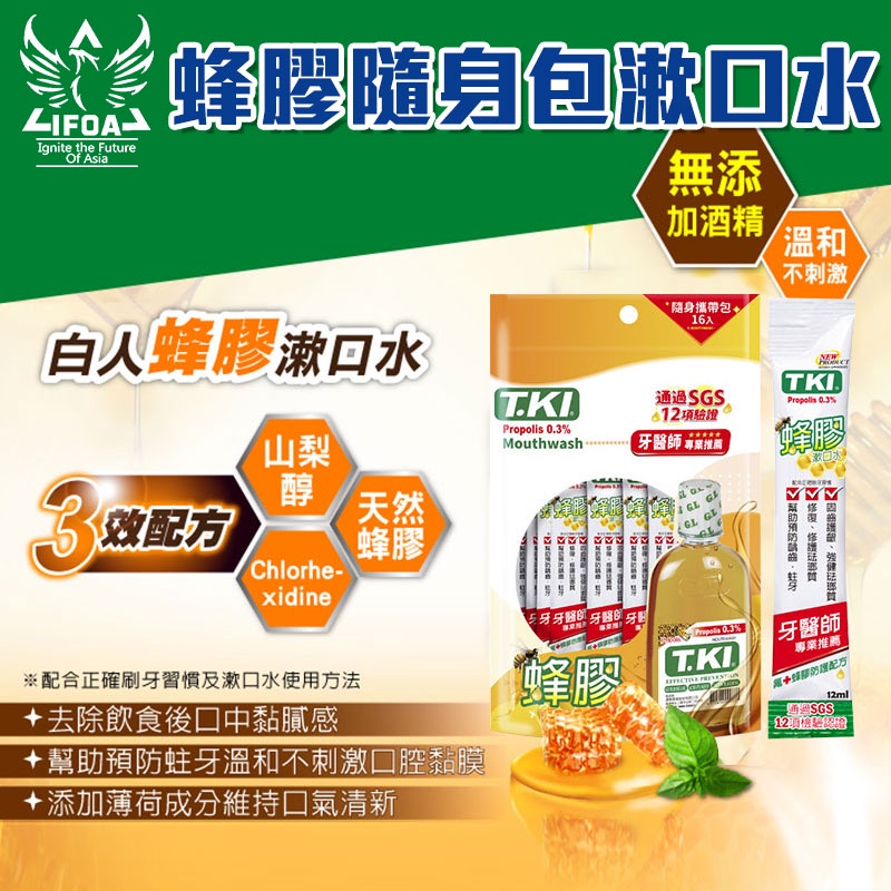TKI鐵齒 蜂膠隨身包漱口水(12mLX16入/包) 【00882】口氣清新 預防口臭 牙膏牙刷 白人牙膏 蜂膠