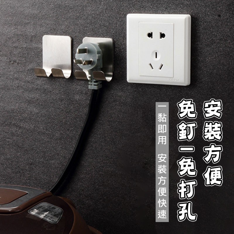 304不鏽鋼插頭掛勾【00762】不鏽鋼插頭架 免釘電線架 刮鬍刀掛勾 電源線掛 黏貼式掛勾 廚房浴室收納