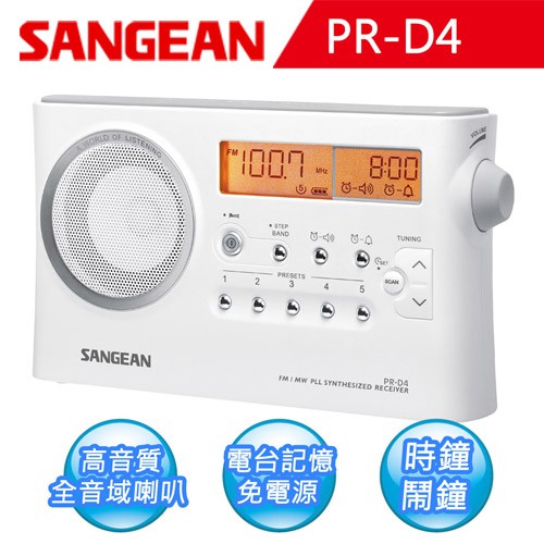 【SANGEAN】二波段 數位式時鐘收音機(PR-D4)