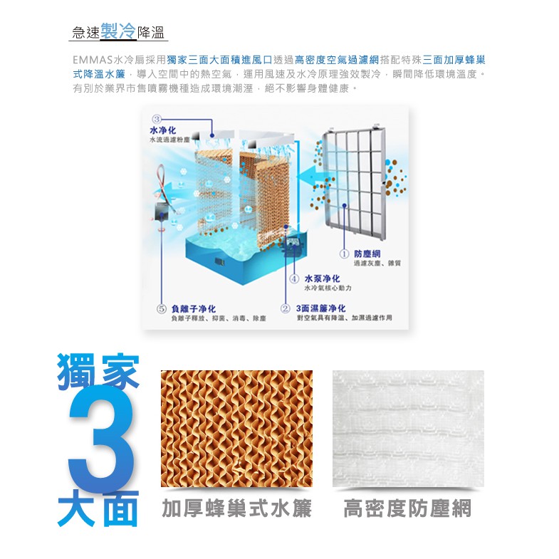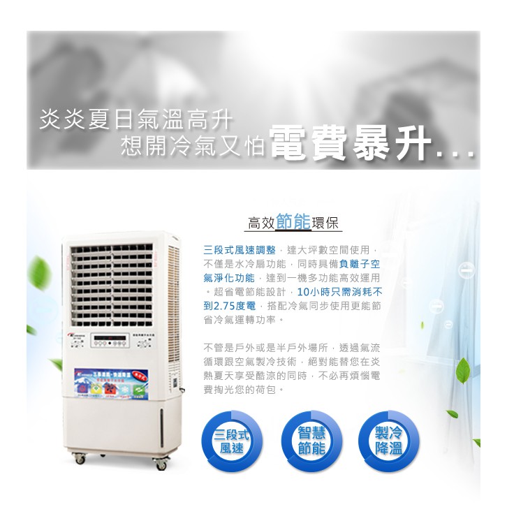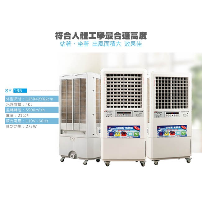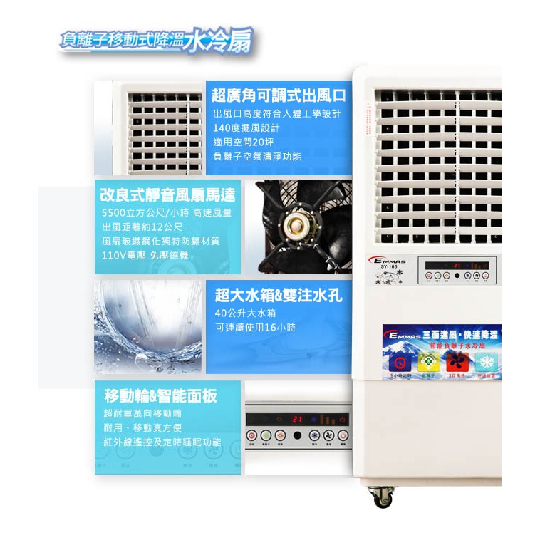 【台灣EMMAS】節能降溫 省電 負離子移動式空氣降溫 風扇水冷扇SY-165
