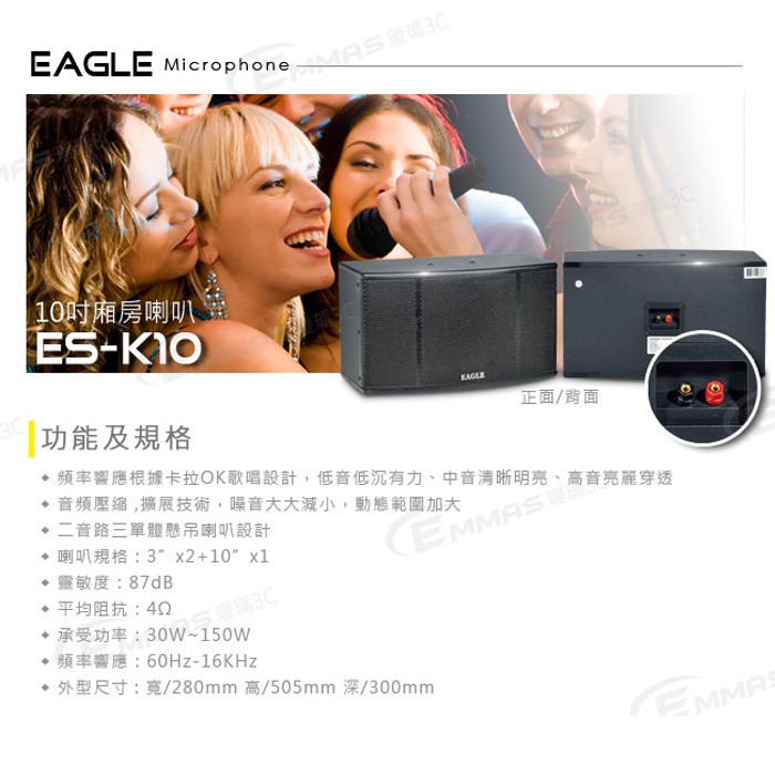 【EAGLE】台灣頂級影音專業品牌10吋全音域頂級廂房喇叭 ES-K10