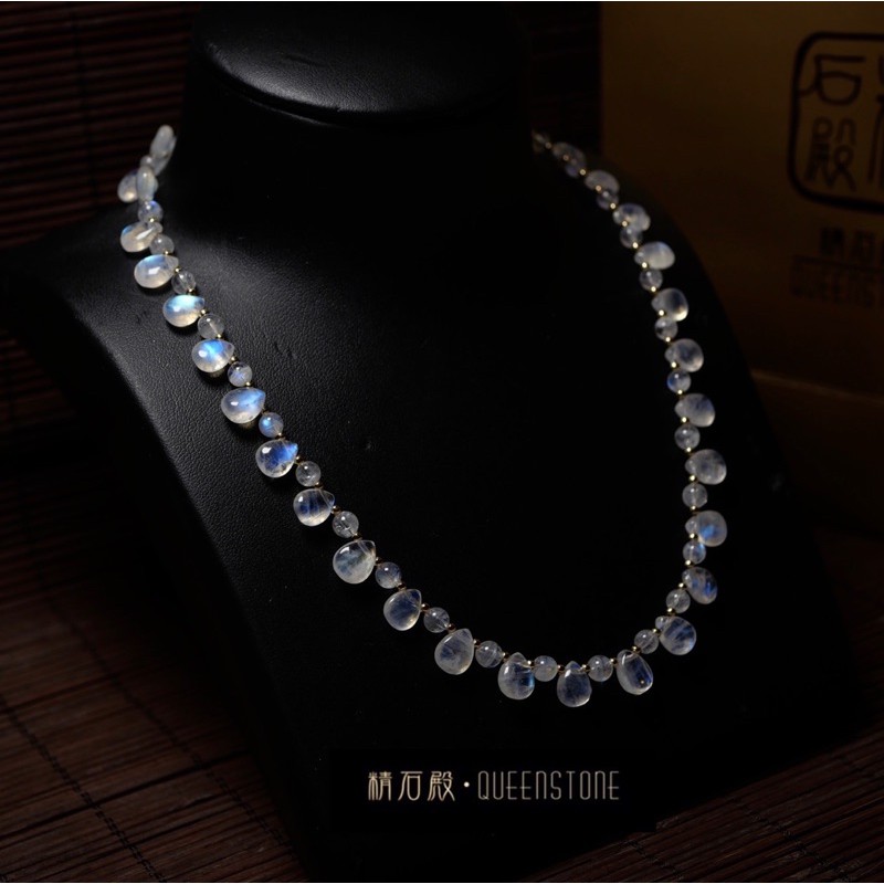 「精石殿」斯里蘭卡頂級藍暈月光石黃k設計項鍊/好人緣