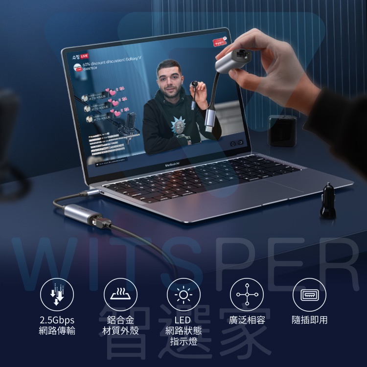 Choetech R02 Type-C to RJ45 2.5Gbps 高速網路轉接器|WitsPer智選家
