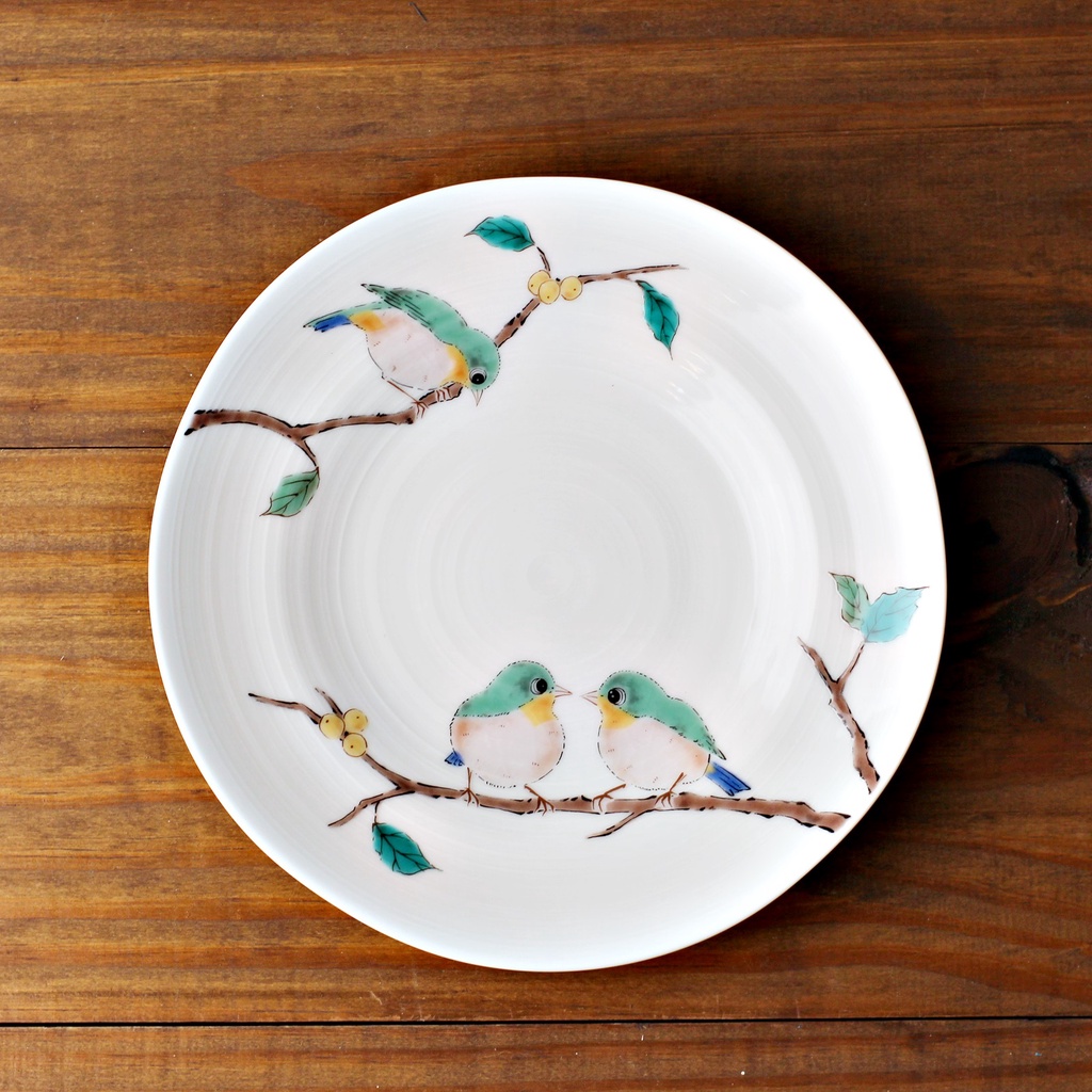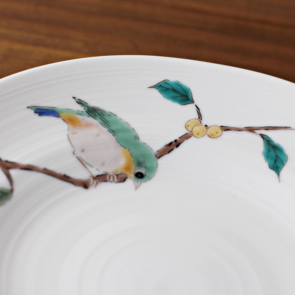 九谷燒 青郊窯 白瓷6號中皿19cm - 暗綠繡眼 [偶拾小巷] 日本製