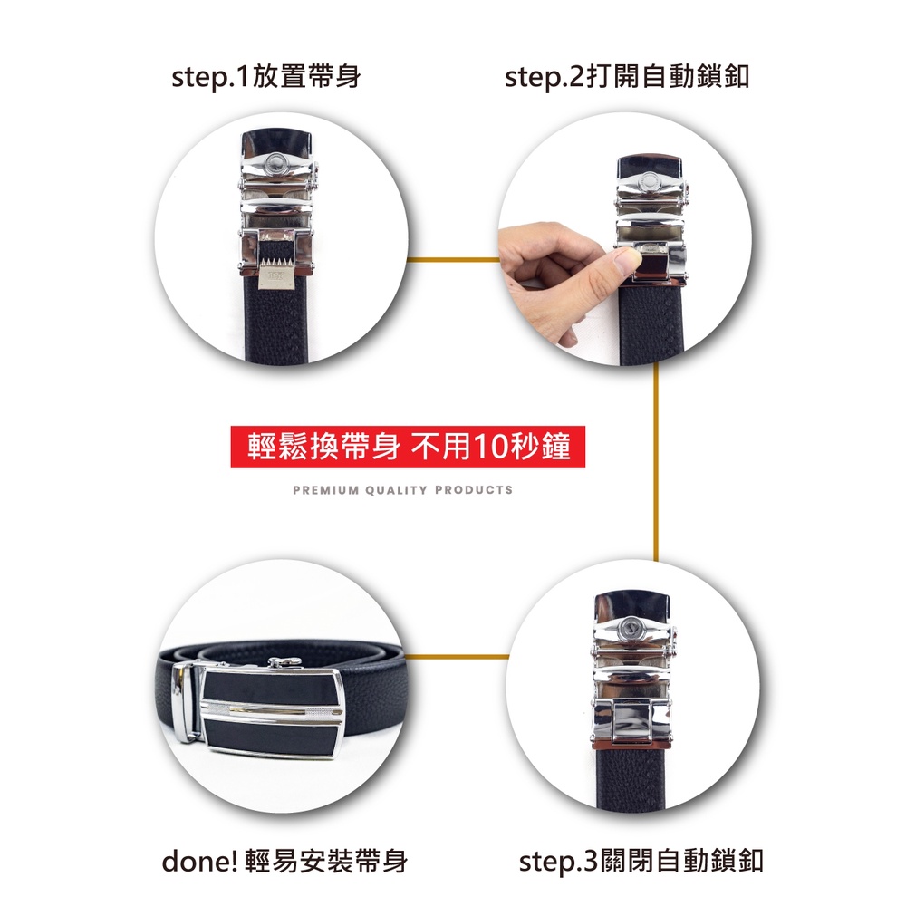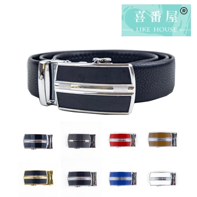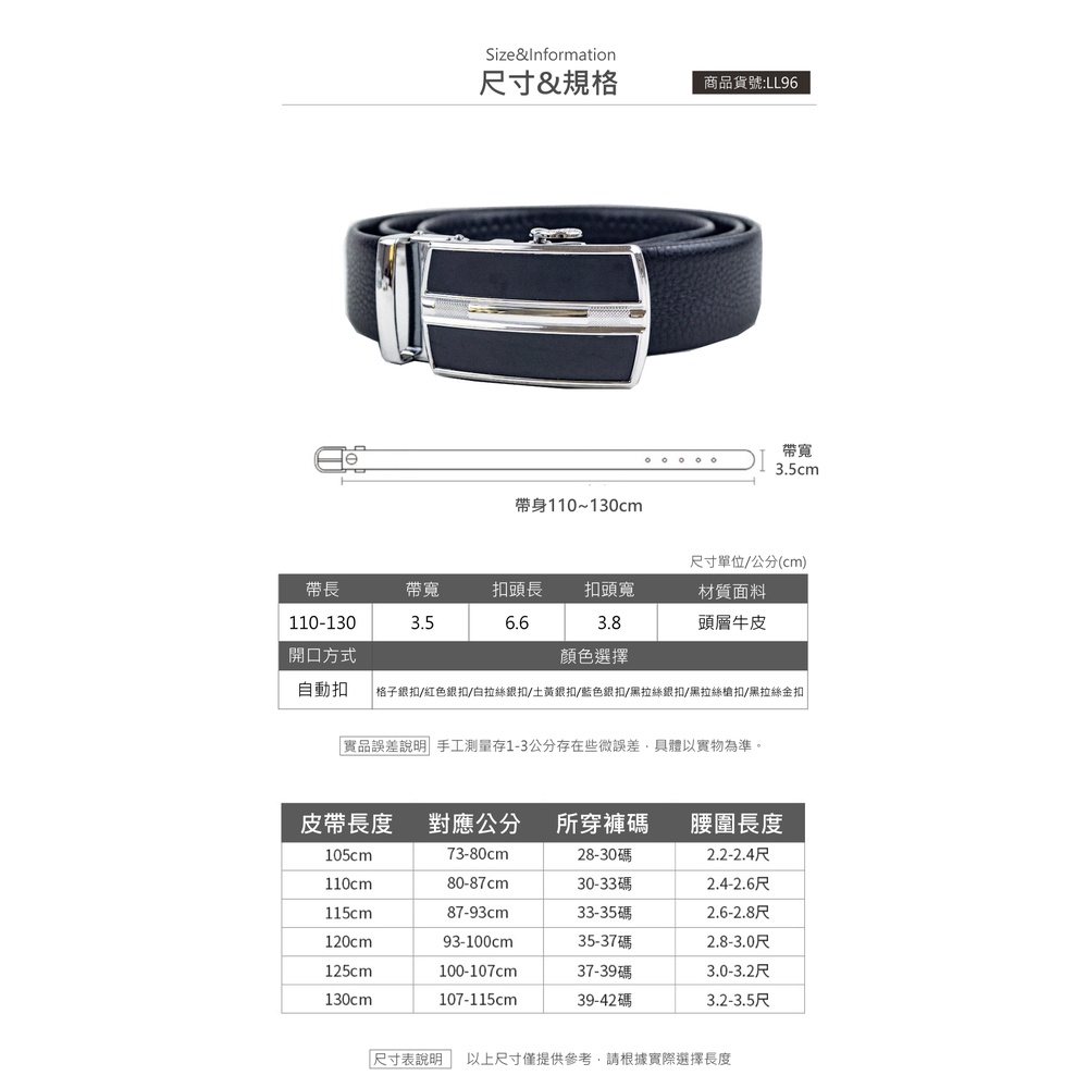 【喜番屋】真皮頭層牛皮帶寬3.5CM男士合金自動釦皮帶【LL96】