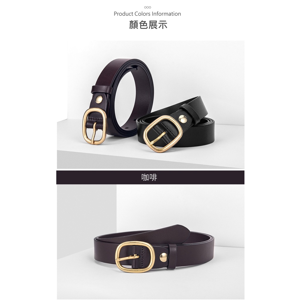 【喜番屋】真皮頭層牛皮帶寬2.8CM女士針扣銅釦皮帶腰帶【LL111】