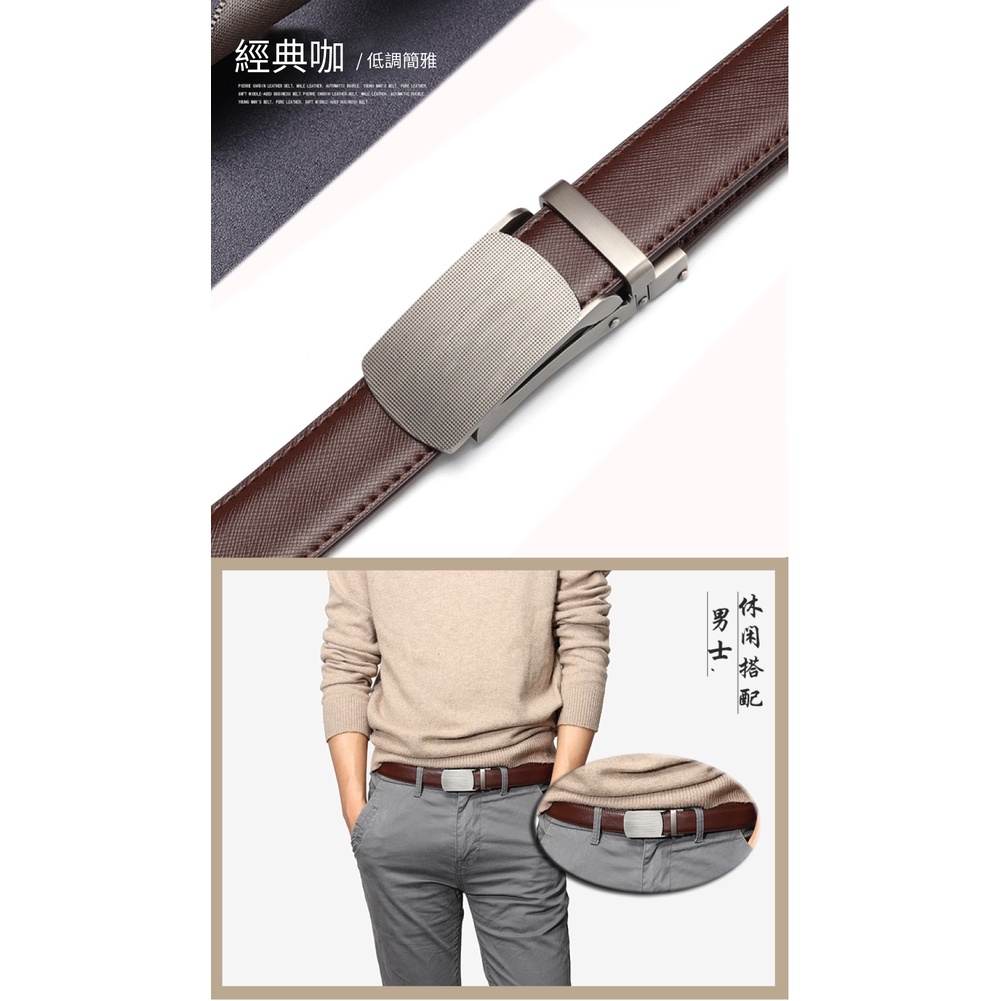 【喜番屋】真皮十字紋牛皮帶寬3CM男士自動釦皮帶腰帶【LL115】