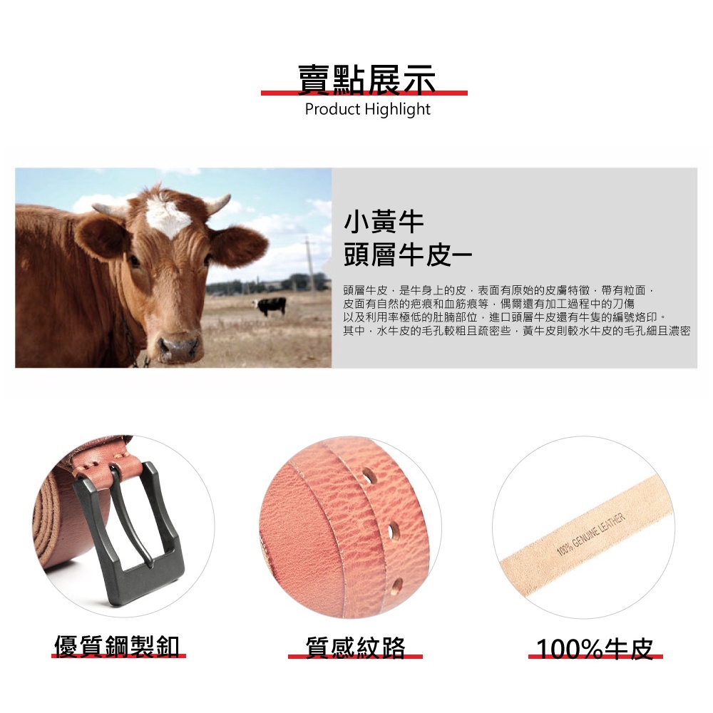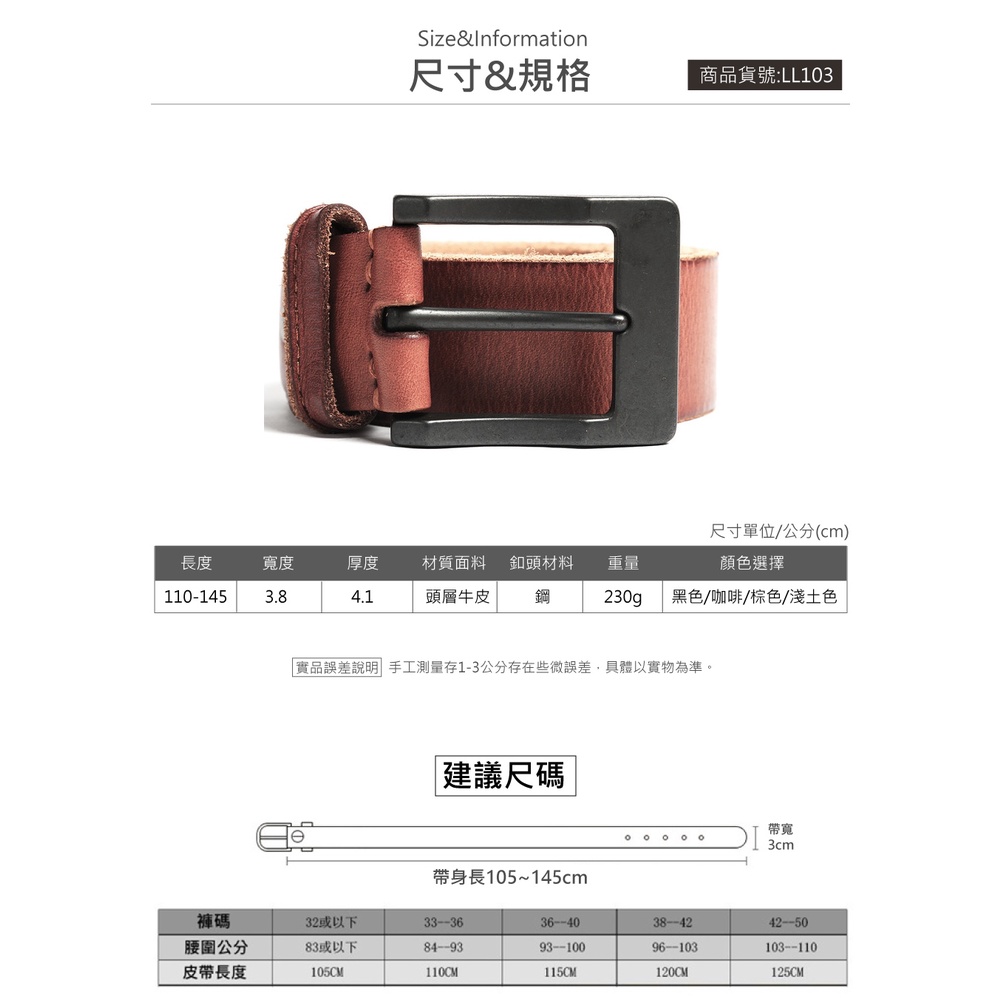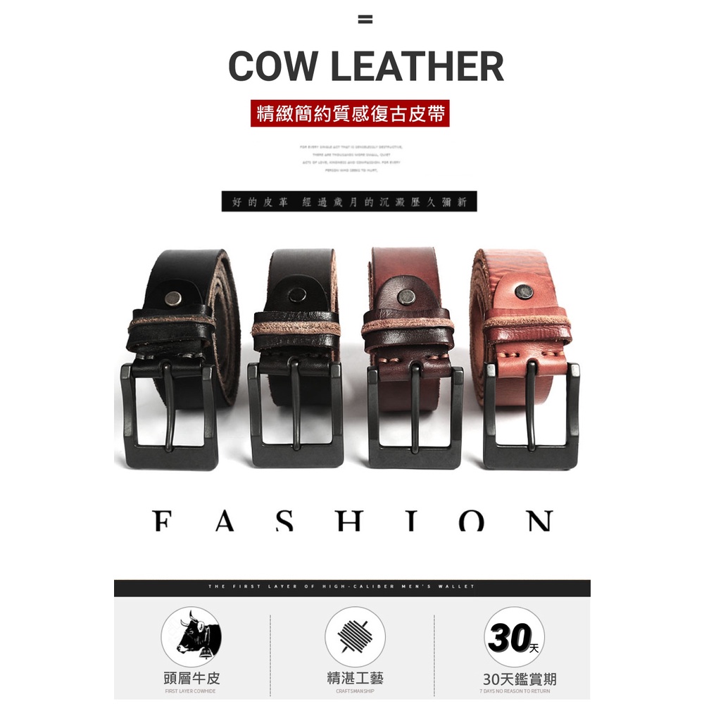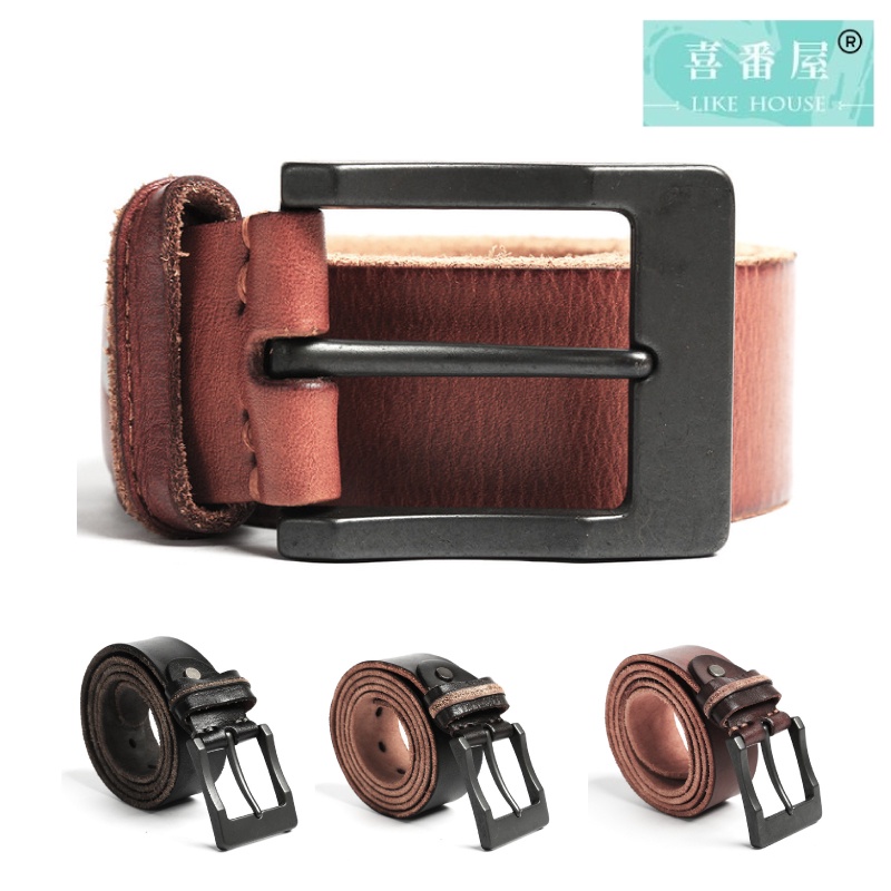 【喜番屋】真皮頭層牛皮帶寬3.8CM復古男士針扣腰帶皮帶【LL103】