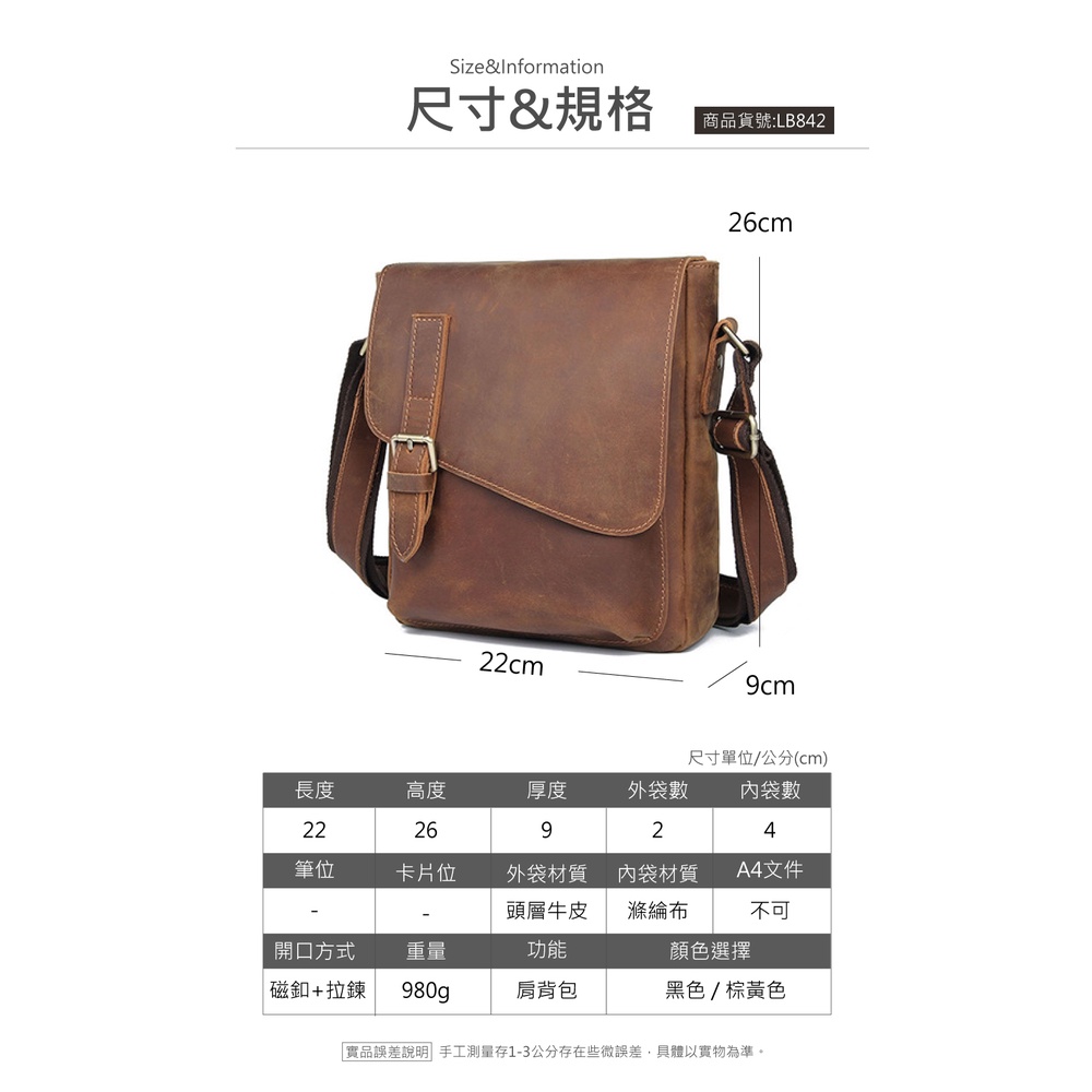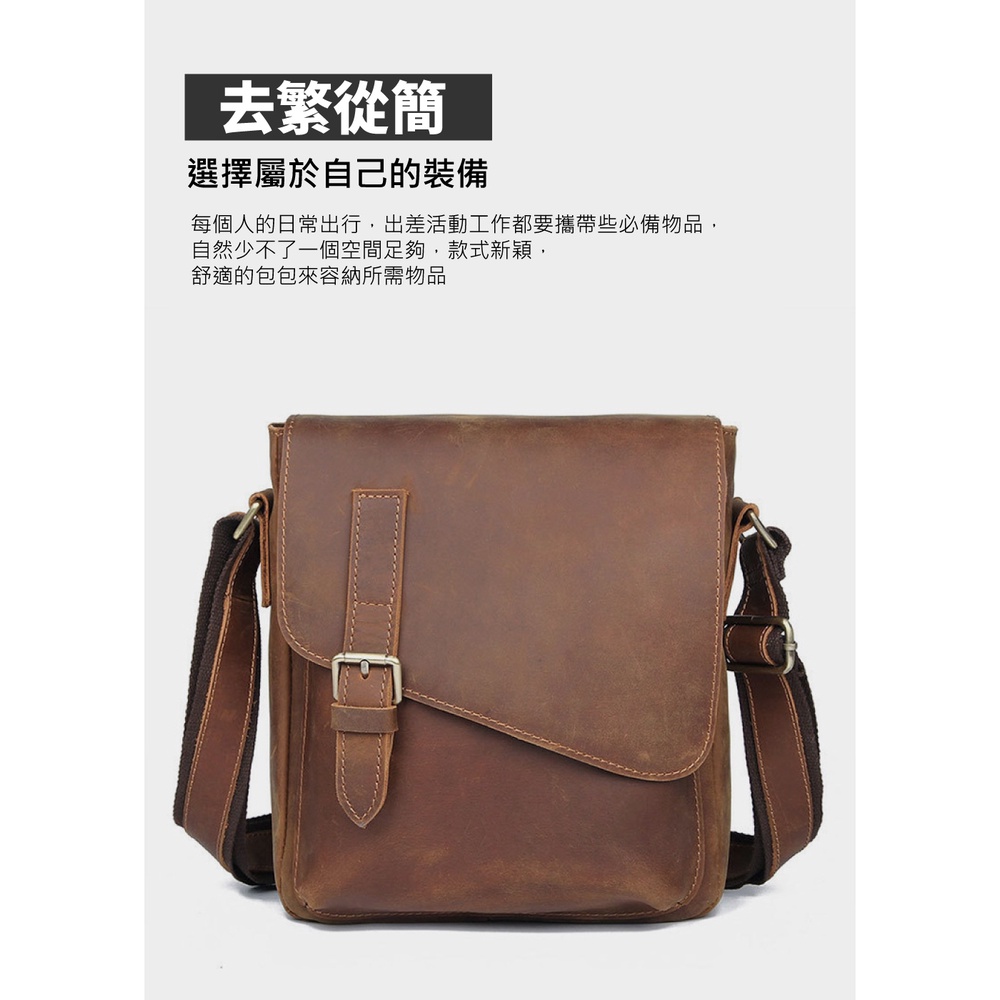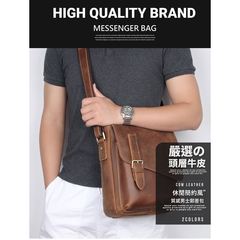【喜番屋】真皮頭層瘋馬牛皮復古男士豎款肩背包單肩包男包【LB842】