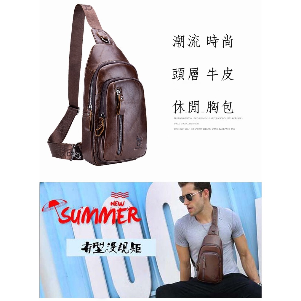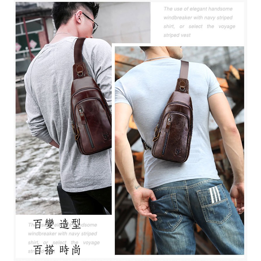 【喜番屋】頭層牛皮男士胸包【LB294】真皮 胸前包 肩背包 斜背包 男包