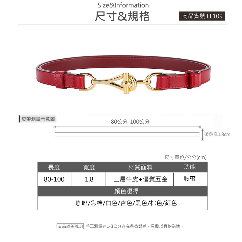 【喜番屋】真皮牛皮帶深1.8CM女士對扣皮帶腰帶【LL109】