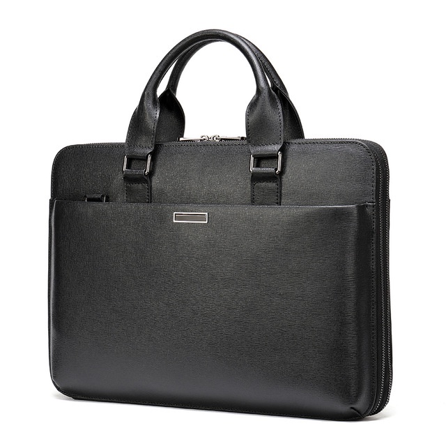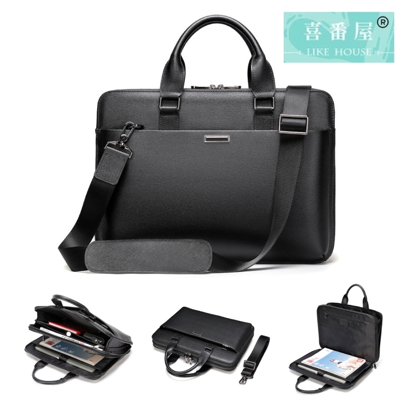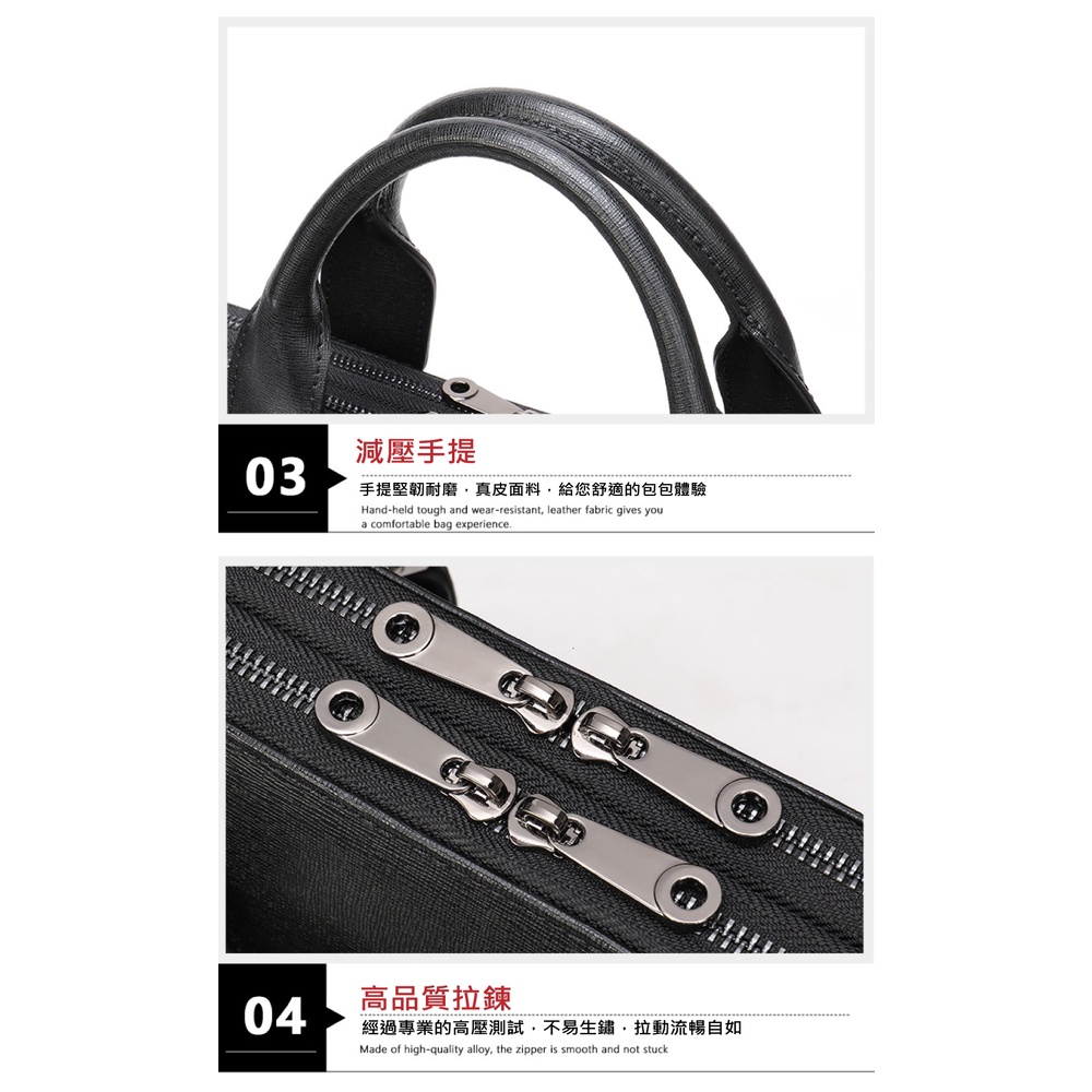 【喜番屋】真皮十字紋牛皮耐磨雙拉鍊全開式筆電包男士手提包男包【LB793】