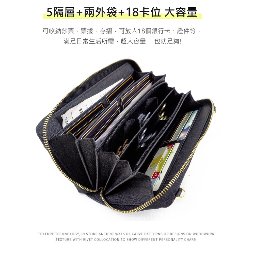【喜番屋】6COIN十字紋牛皮女士肩背長夾【LH885】18卡位 3WAY 手拿 女夾 真皮